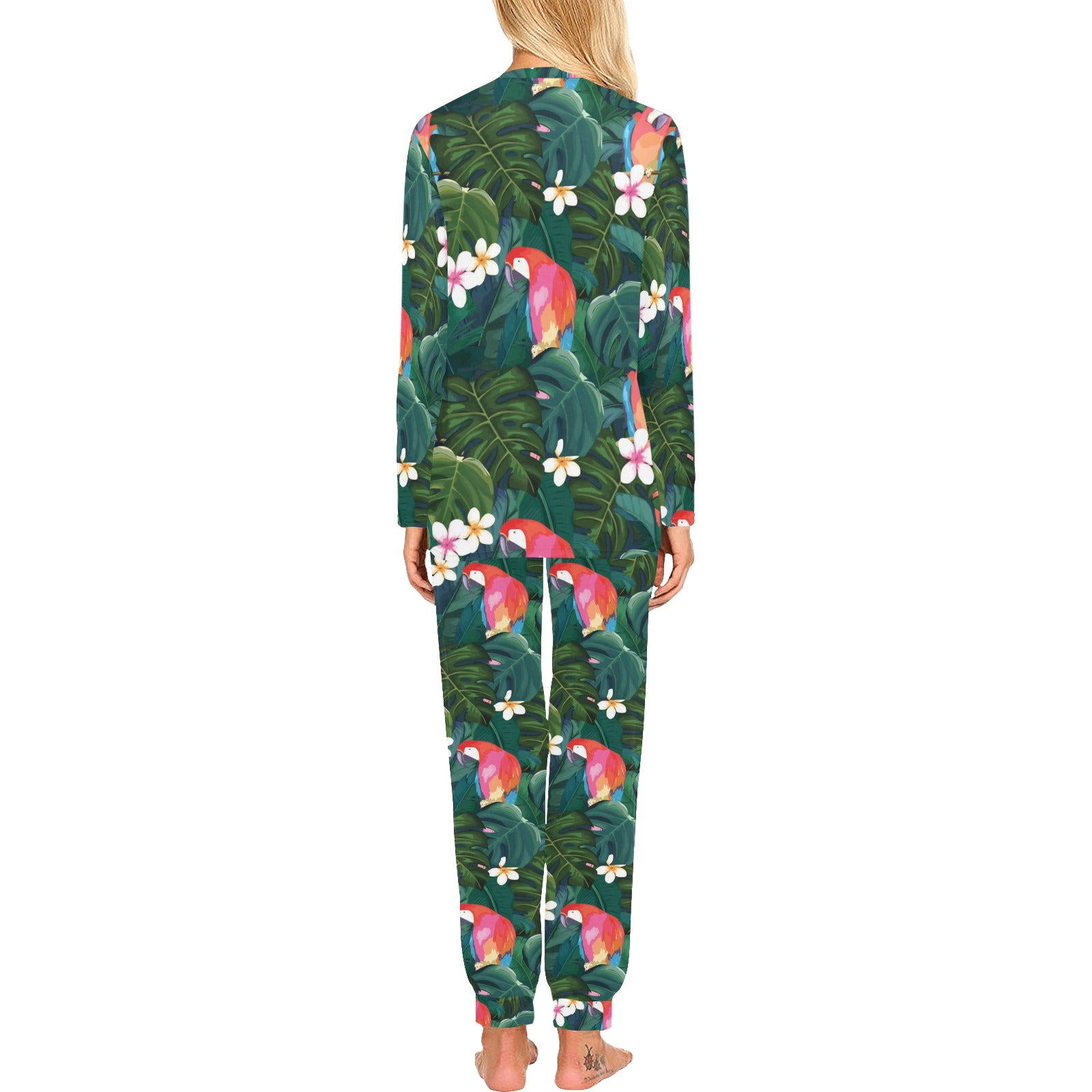 Parrot Palm tree leaves flower hibiscus pattern Women's All Over Print Pajama Set