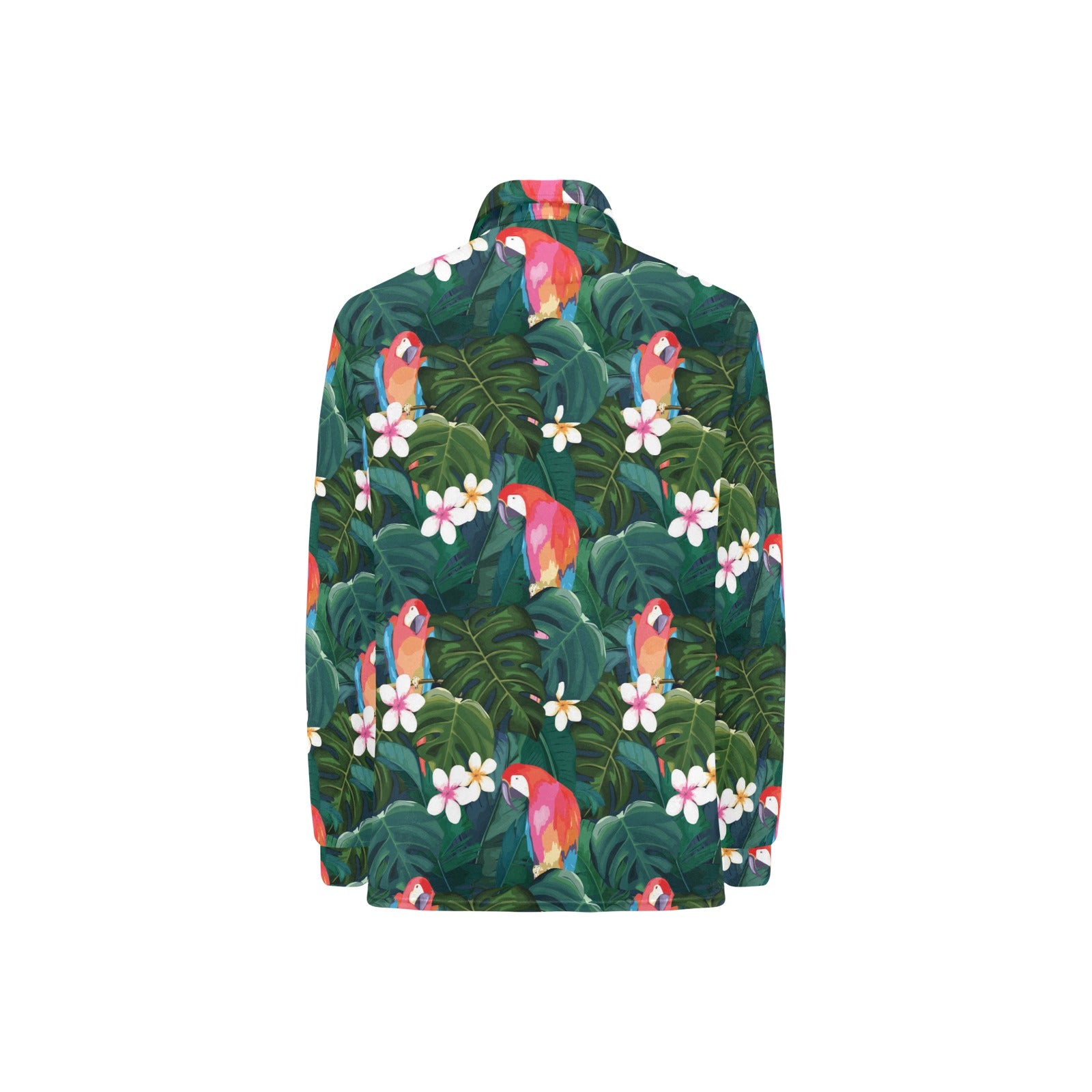 Parrot Palm tree leaves flower hibiscus pattern Women's Long Sleeve Polo Shirt