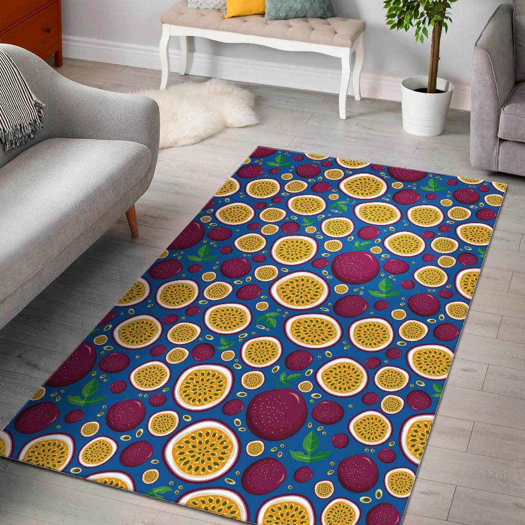 Passion fruit blue background Area Rug is a uniqued design and limited item. It made to order, hand printed, and sewn with love in our factory.
