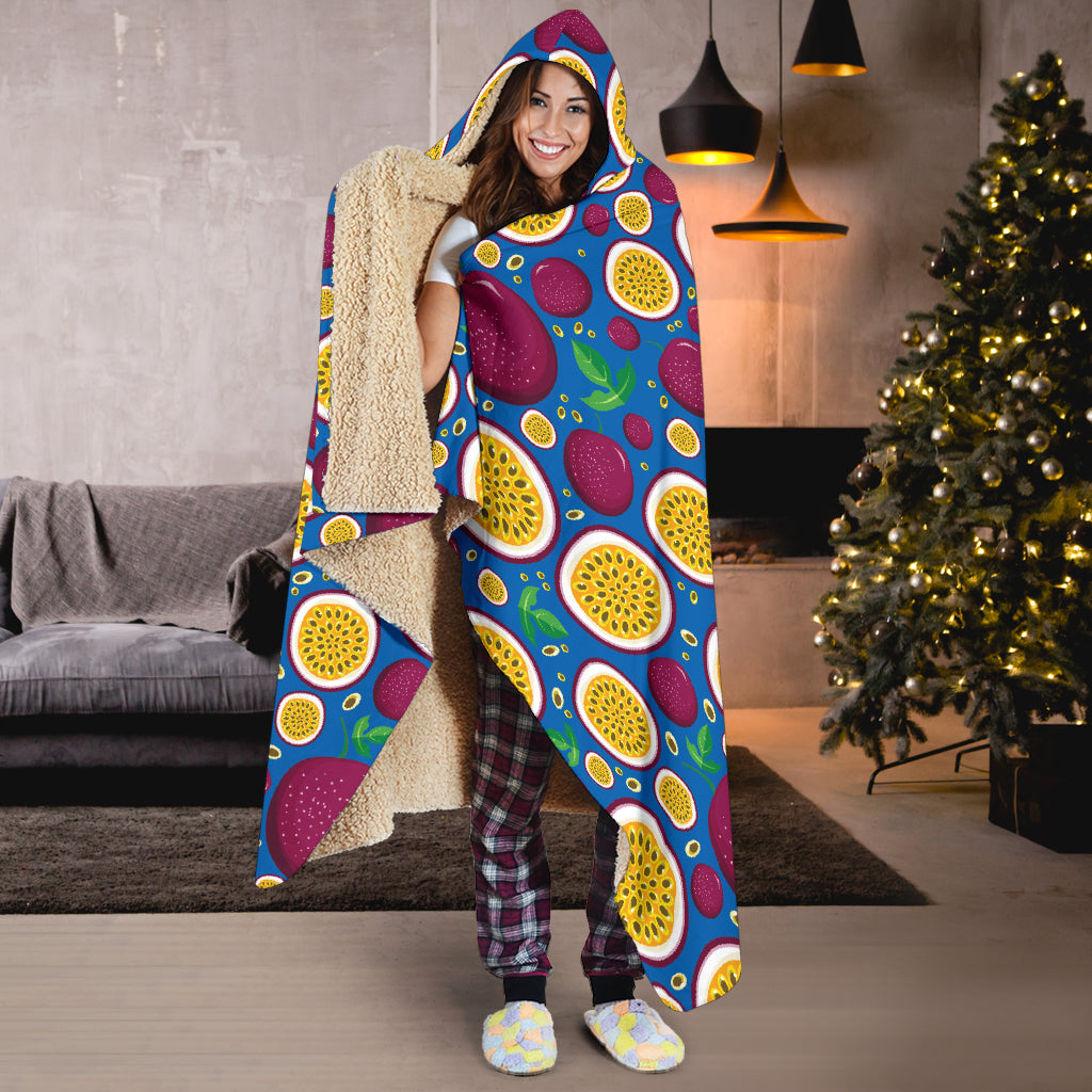 Passion fruit blue background Hooded Blanket are custom-made-to-order and handcrafted to the highest quality standards.