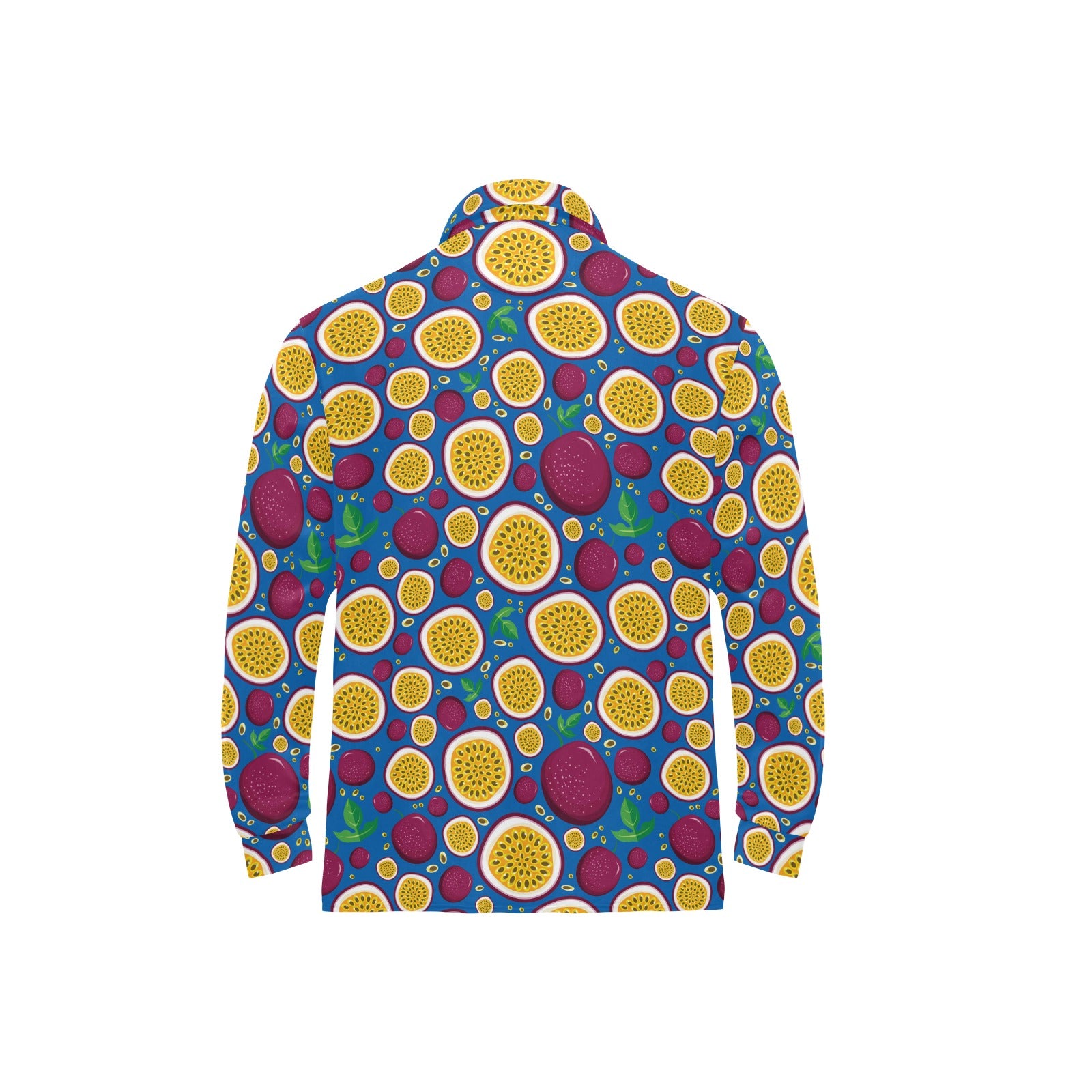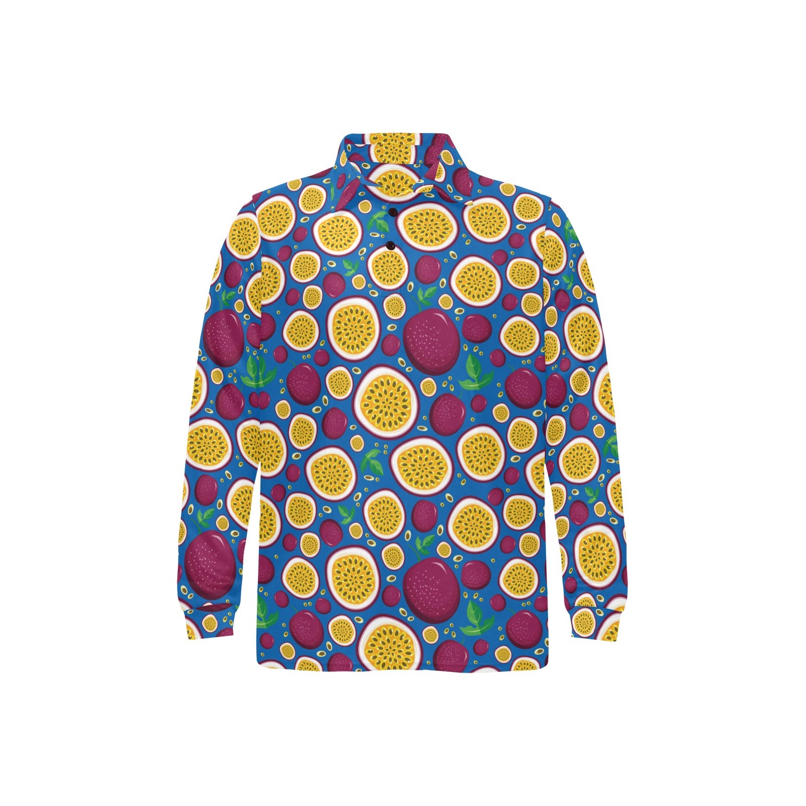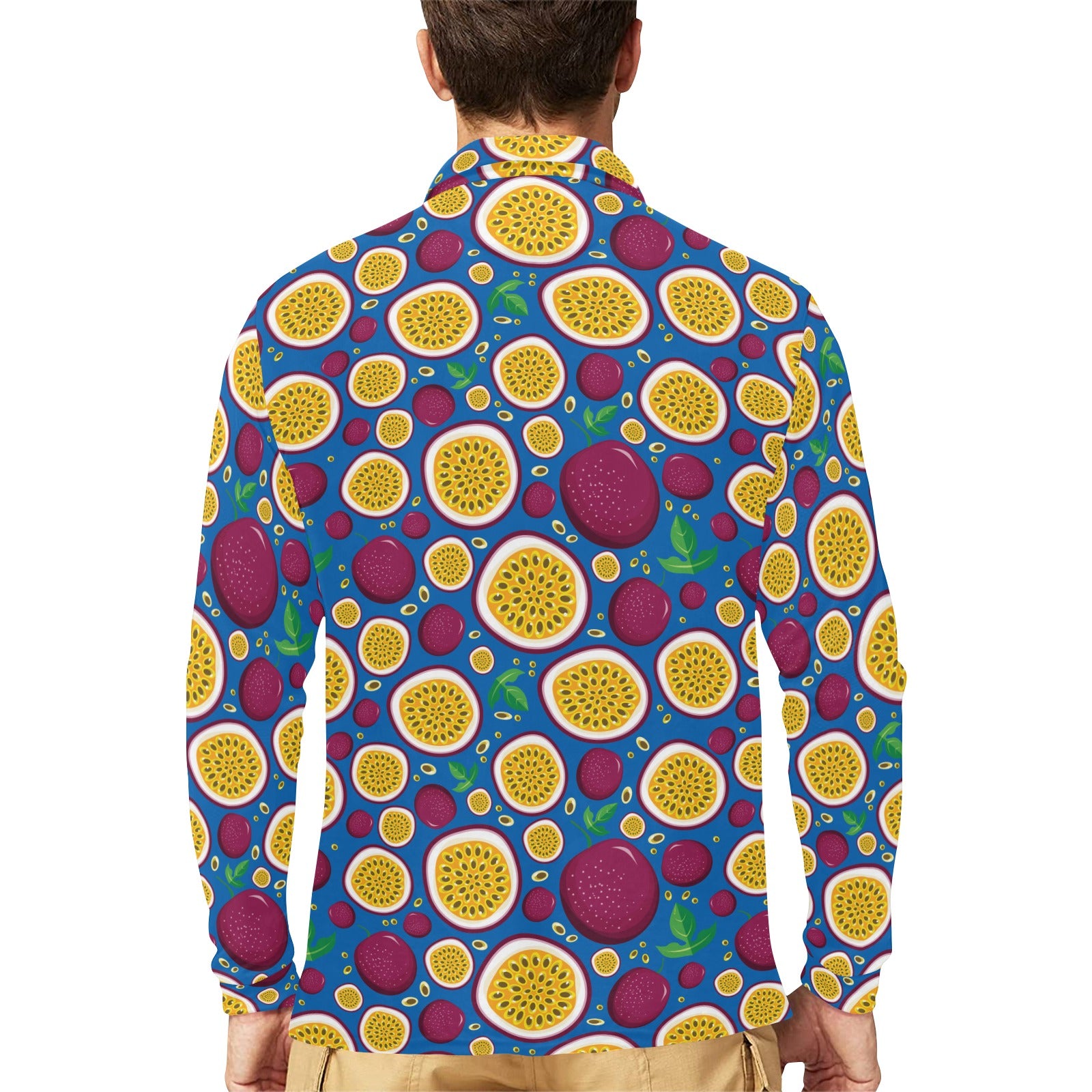 Passion fruit blue background Men's Long Sleeve Polo Shirt