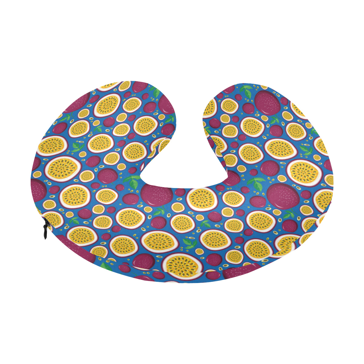 Passion fruit blue background U-Shaped Travel Neck Pillow