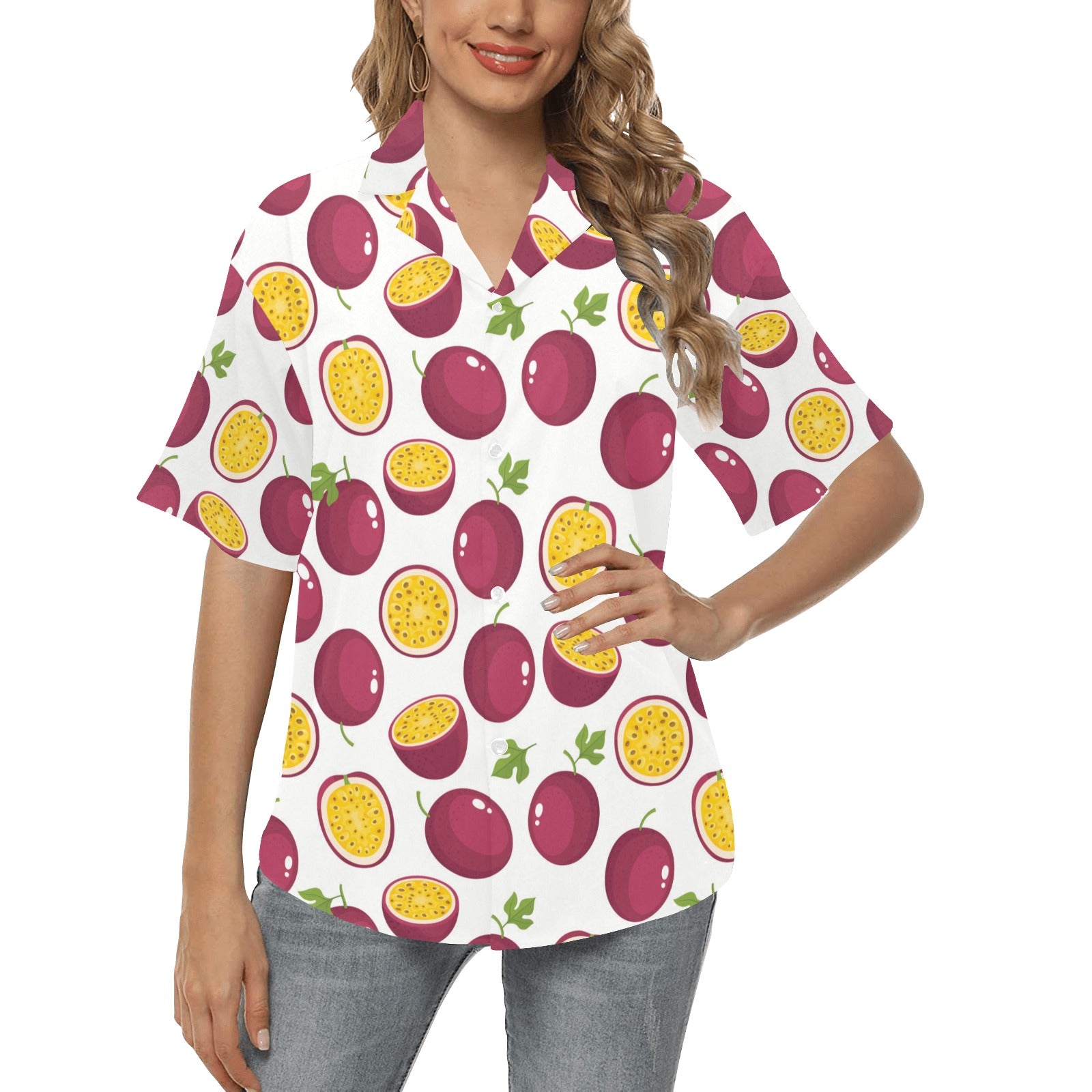 Passion fruit design pattern Women's All Over Print Hawaiian Shirt