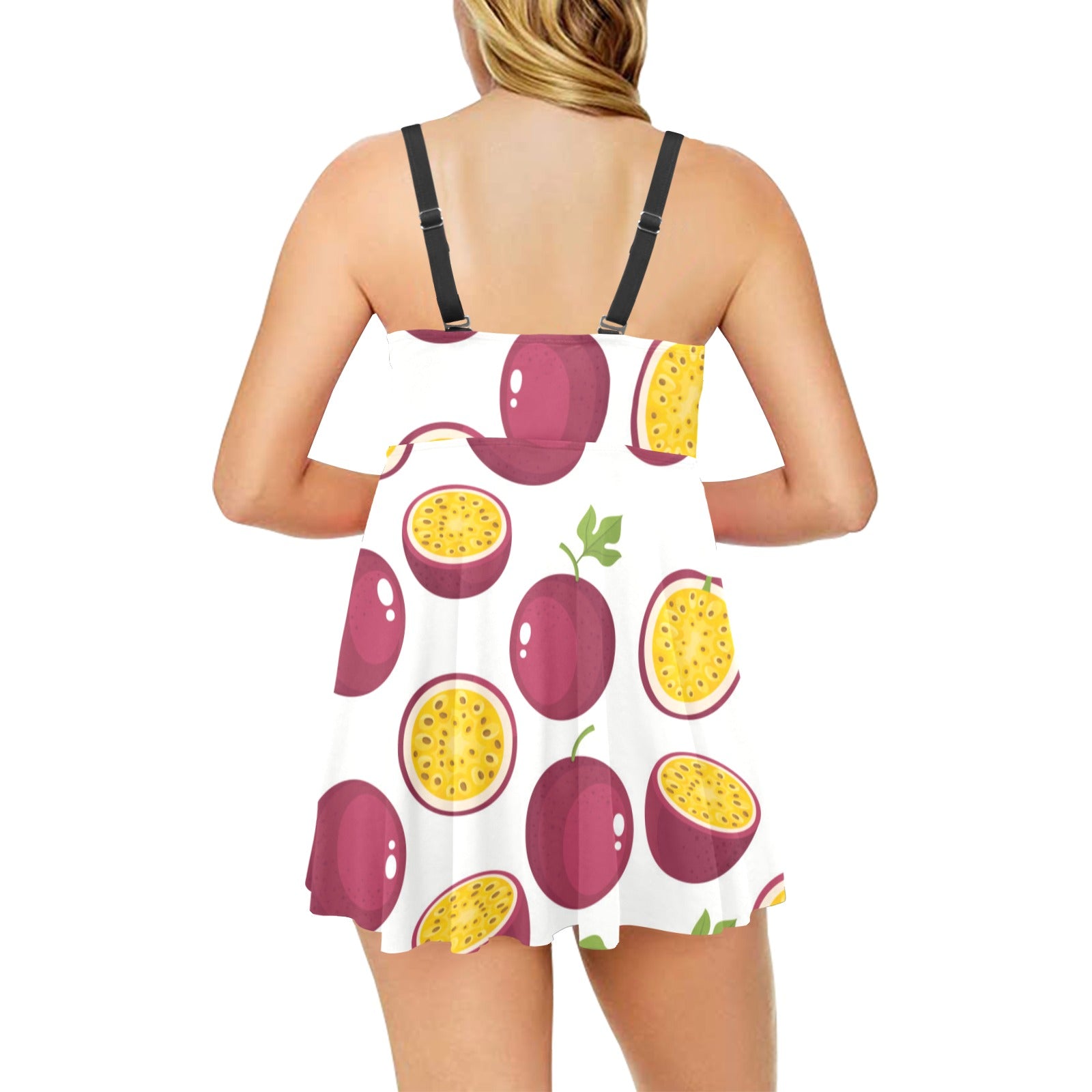 Passion fruit design pattern Chest Sexy Pleated Two Piece Swim Dress