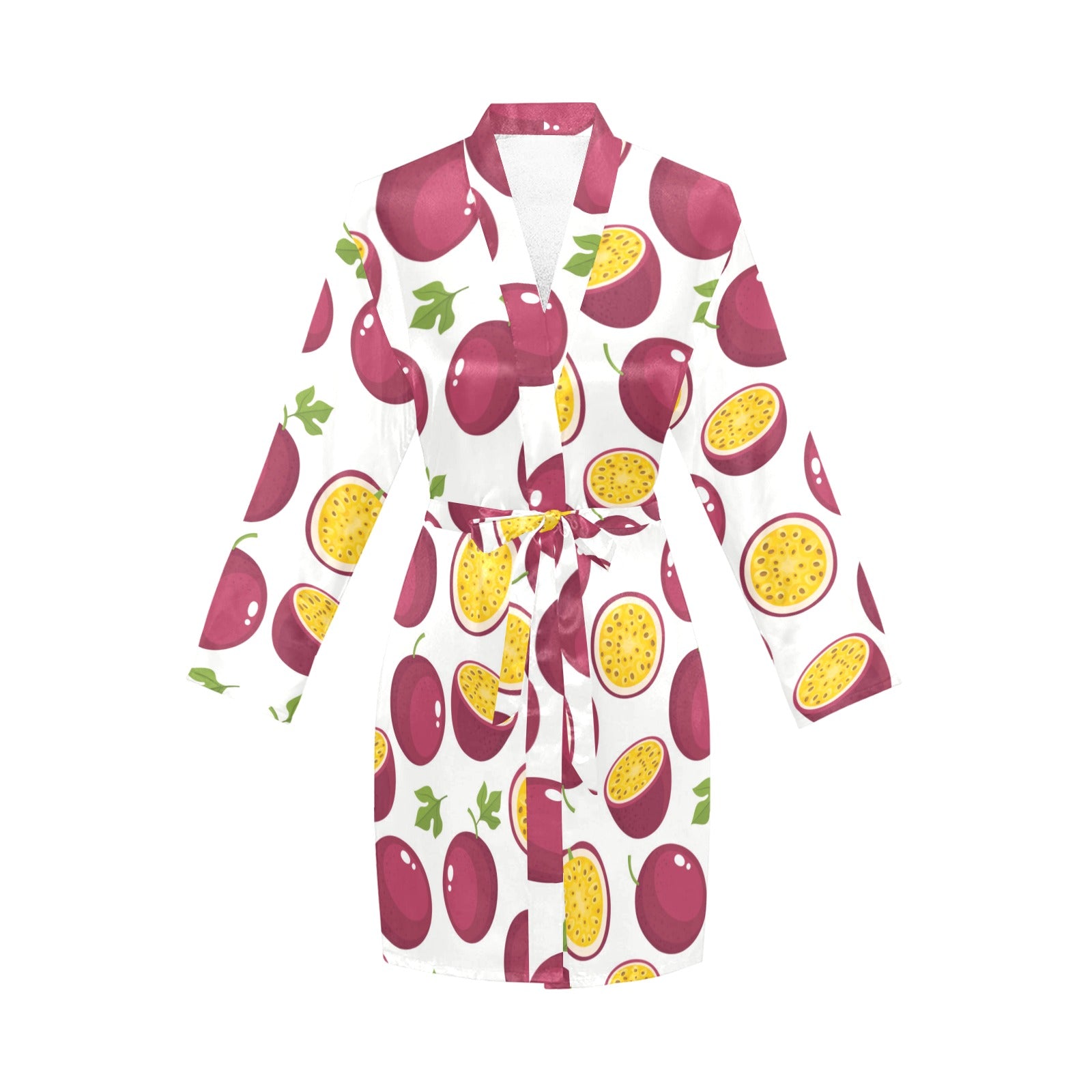 Passion fruit design pattern Women's Long Sleeve Belted Night Robe