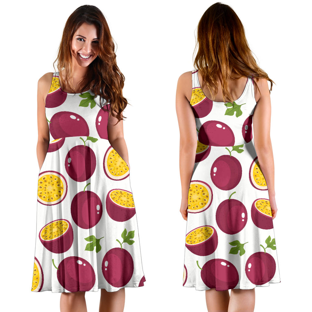 Passion fruit design pattern Sleeveless Midi Dress is a uniqued design and limited item. It made to order, hand printed, and sewn with love in our factory.