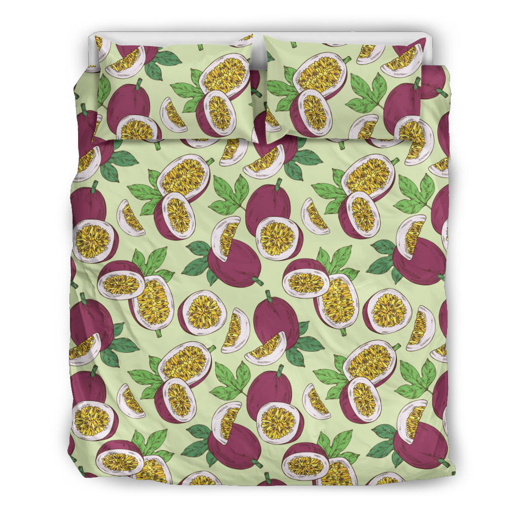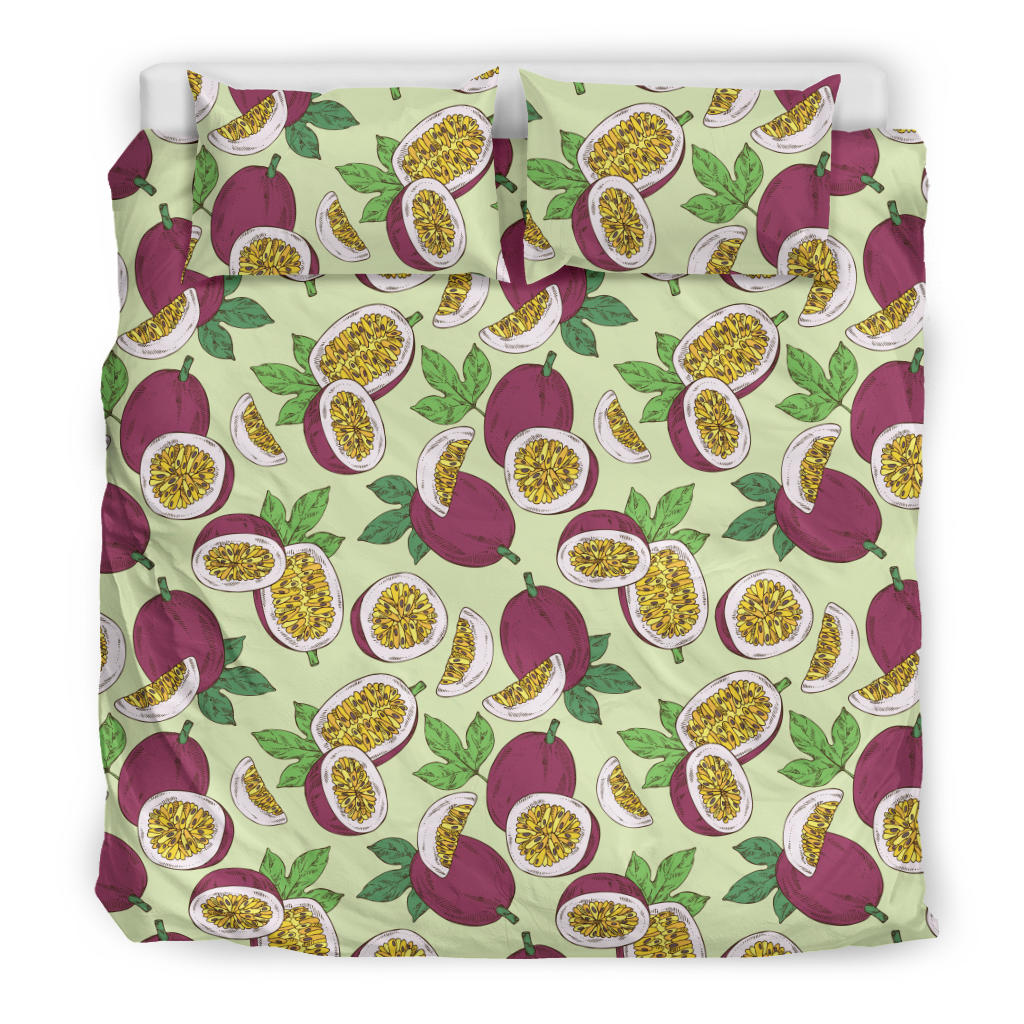 Passion fruit pattern Bedding Set is a uniqued design and limited item. It made to order, hand printed, and sewn with love in our factory.