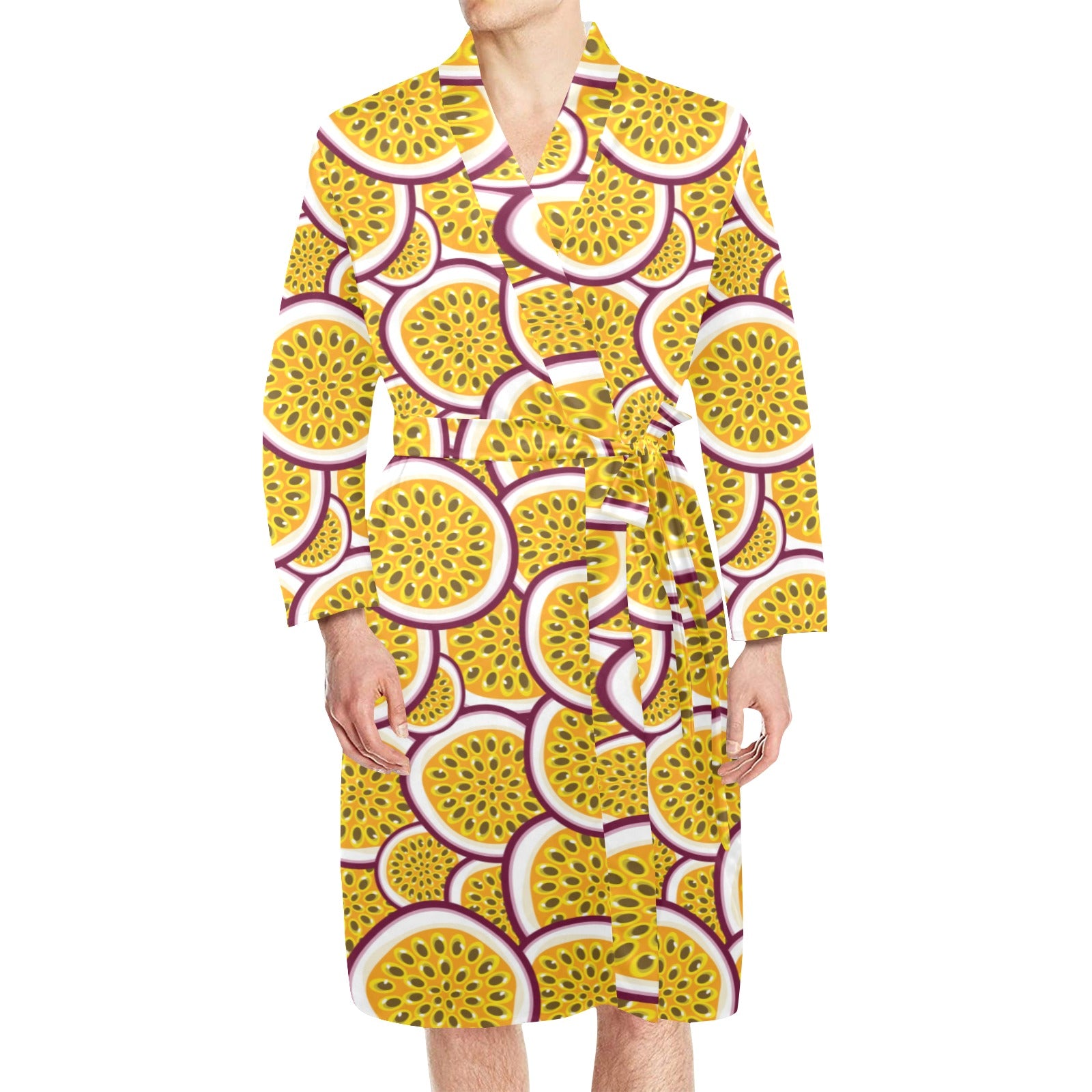Passion fruits slice pattern Men's Long Sleeve Belted Night Robe