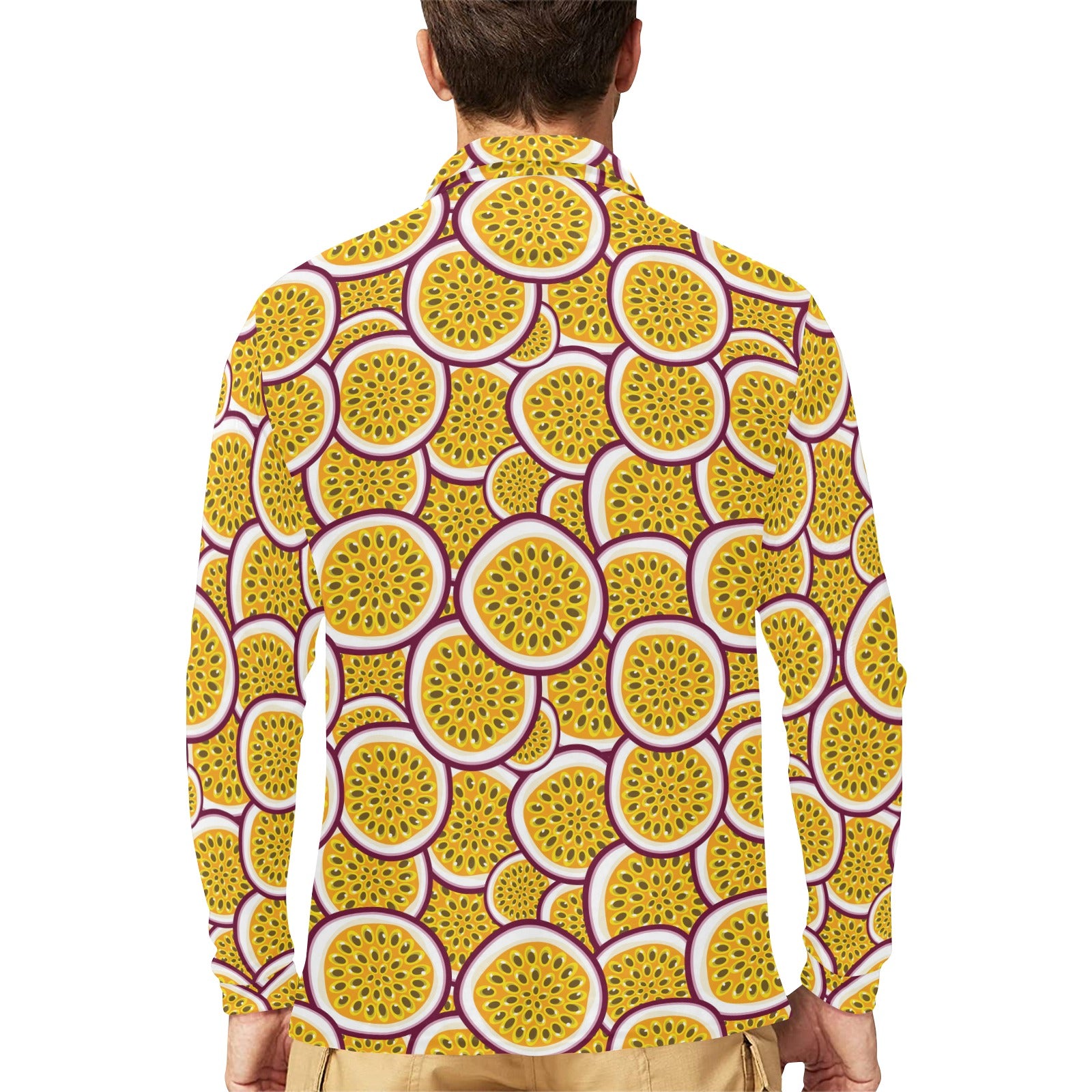 Passion fruits slice pattern Men's Long Sleeve Polo Shirt