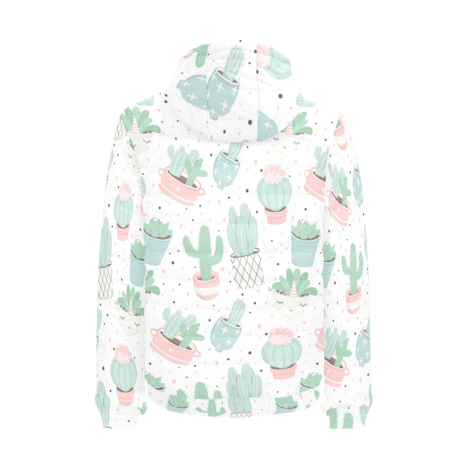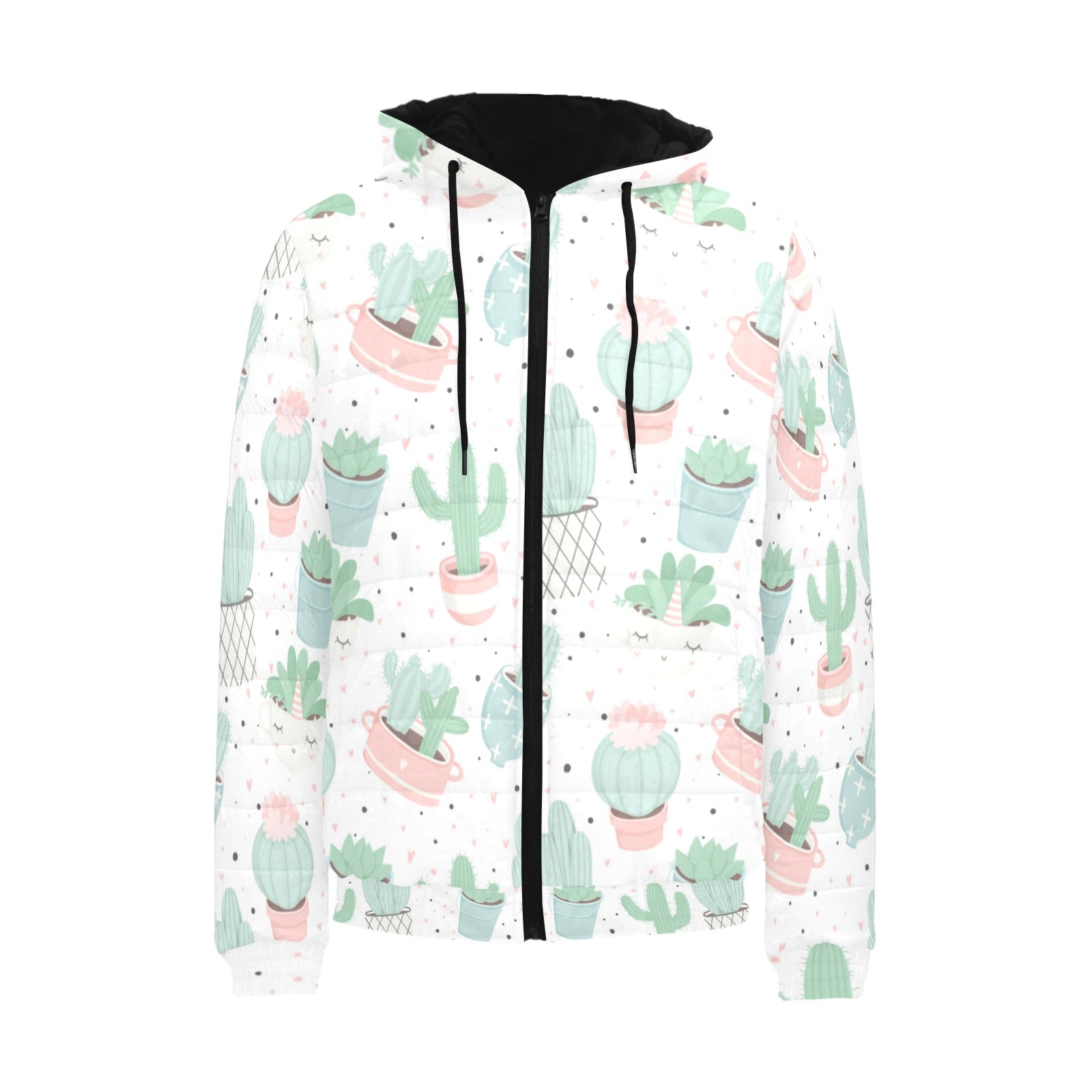 Pastel color cactus pattern Men's Padded Hooded Jacket