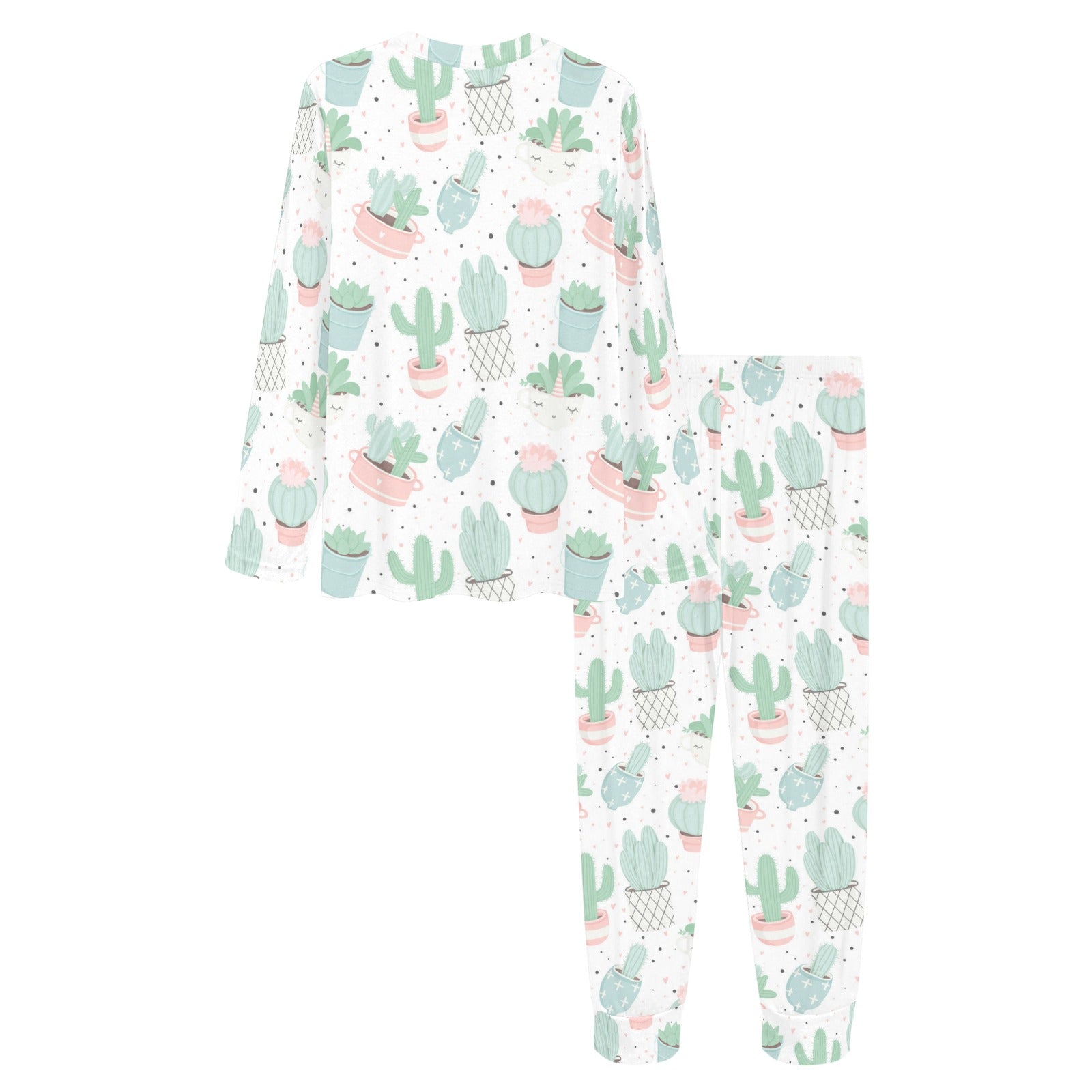 Pastel color cactus pattern Women's All Over Print Pajama Set