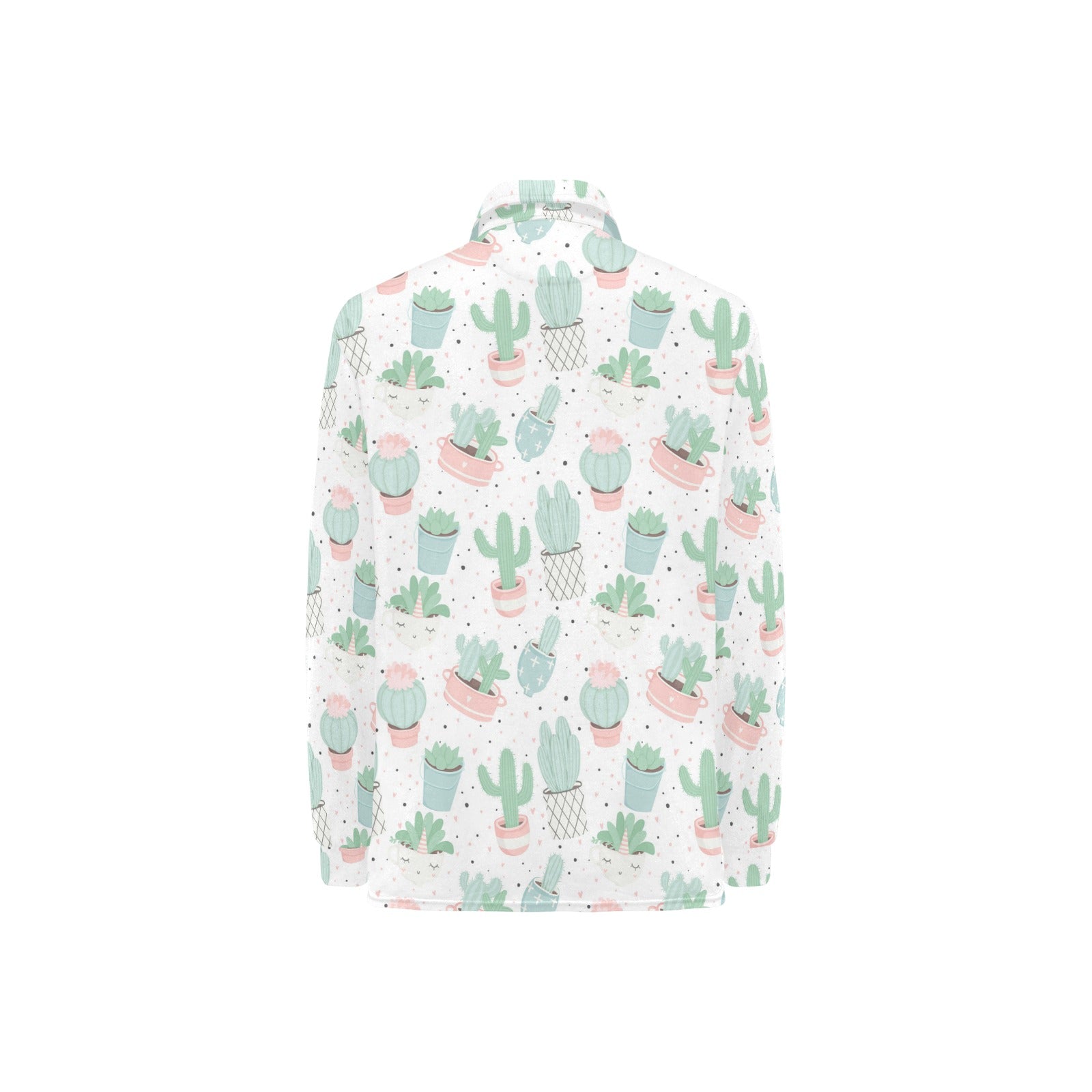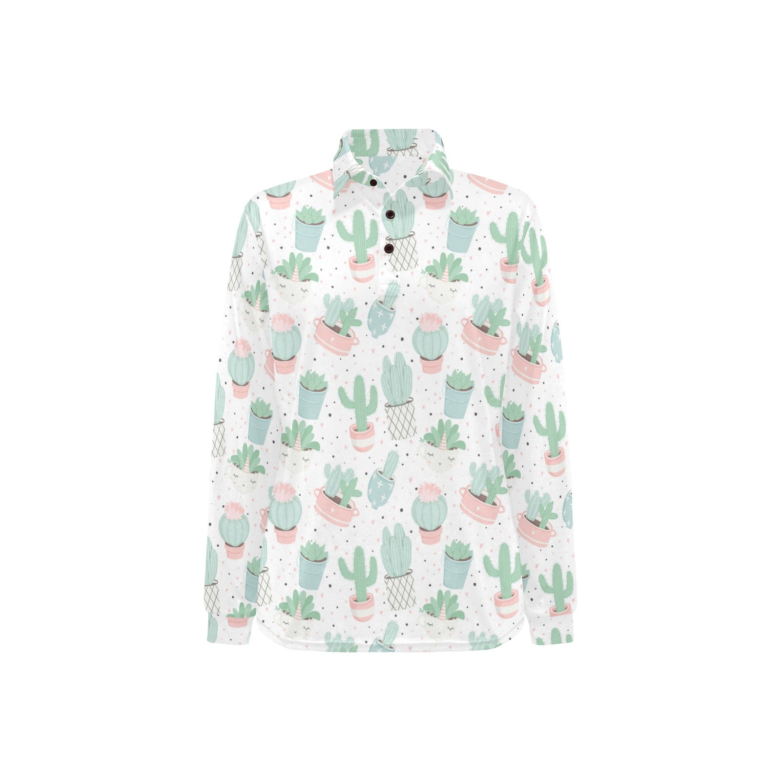 Pastel color cactus pattern Women's Long Sleeve Polo Shirt