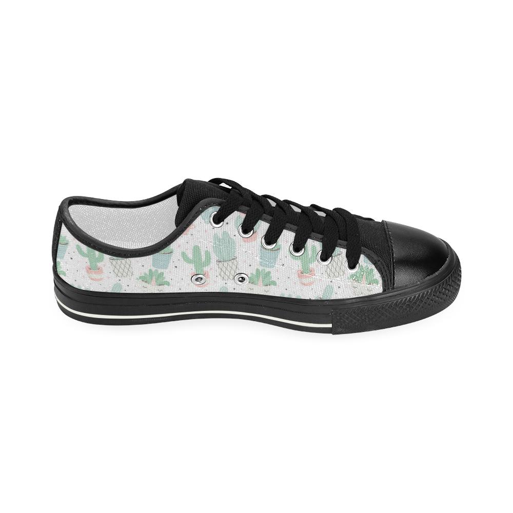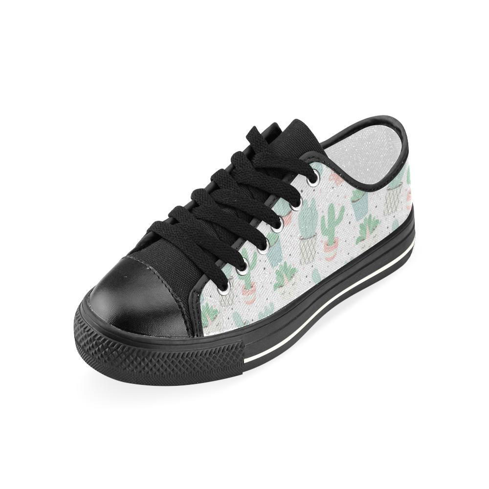 Pastel color cactus pattern Kids' Boys' Girls' Low Top Canvas Shoes Black