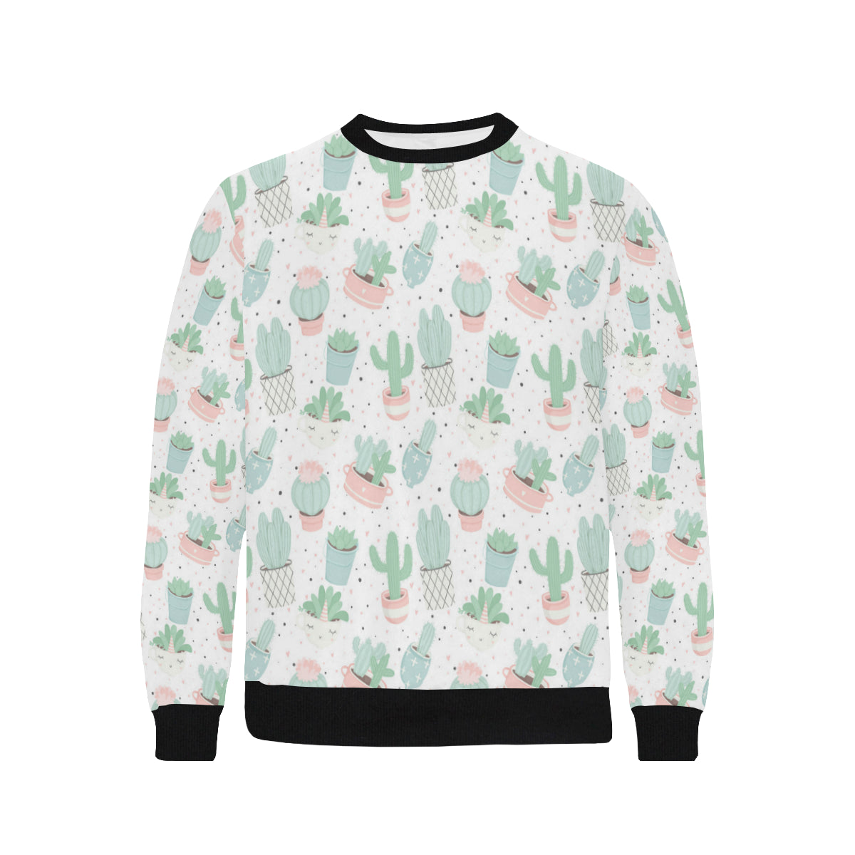Pastel color cactus pattern Men's Crew Neck Sweatshirt