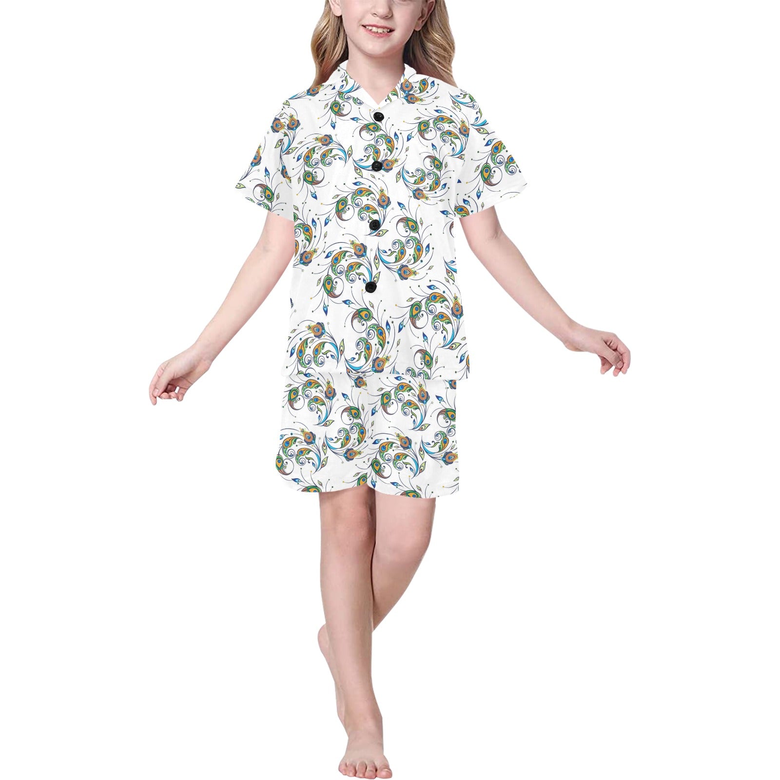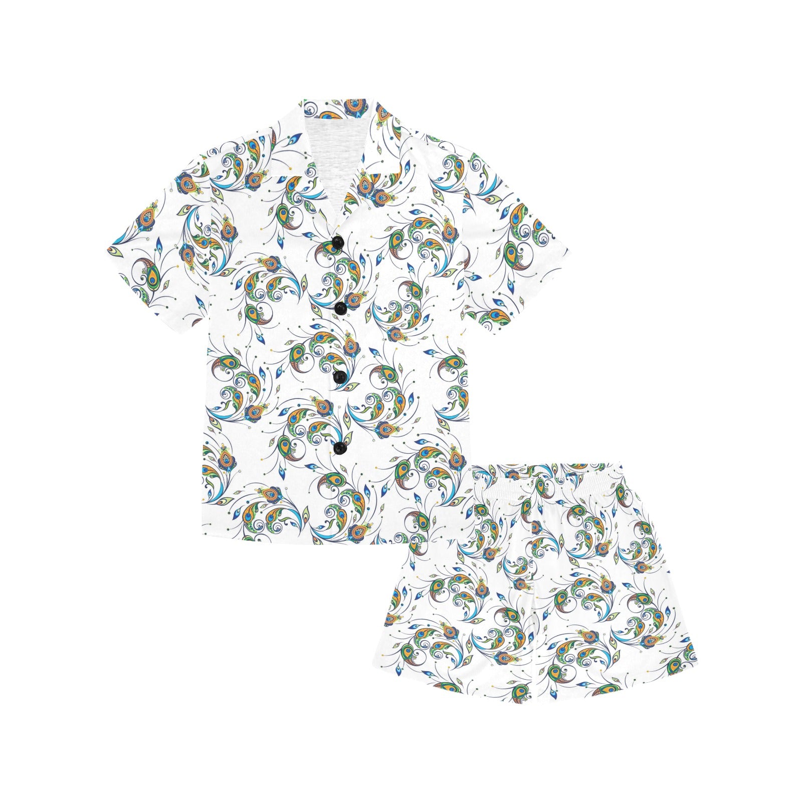 Peacock feather pattern Kids' Boys' Girls' V-Neck Short Pajama Set