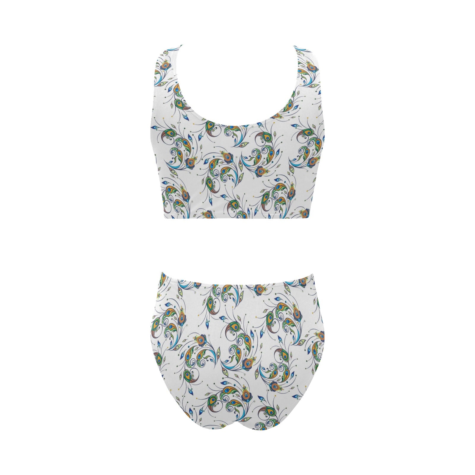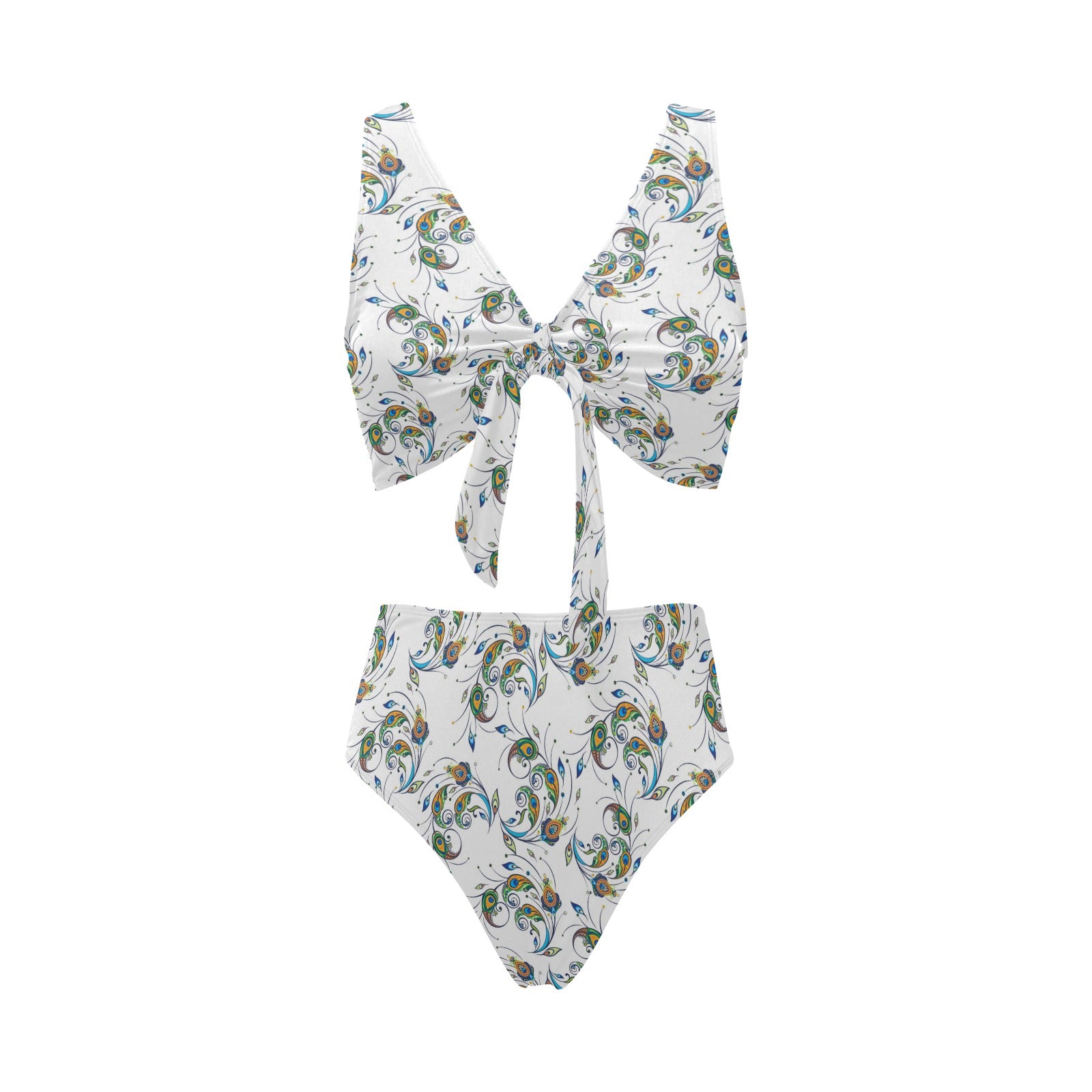 Peacock feather pattern Chest Bowknot High Waisted Bikini Swimsuit