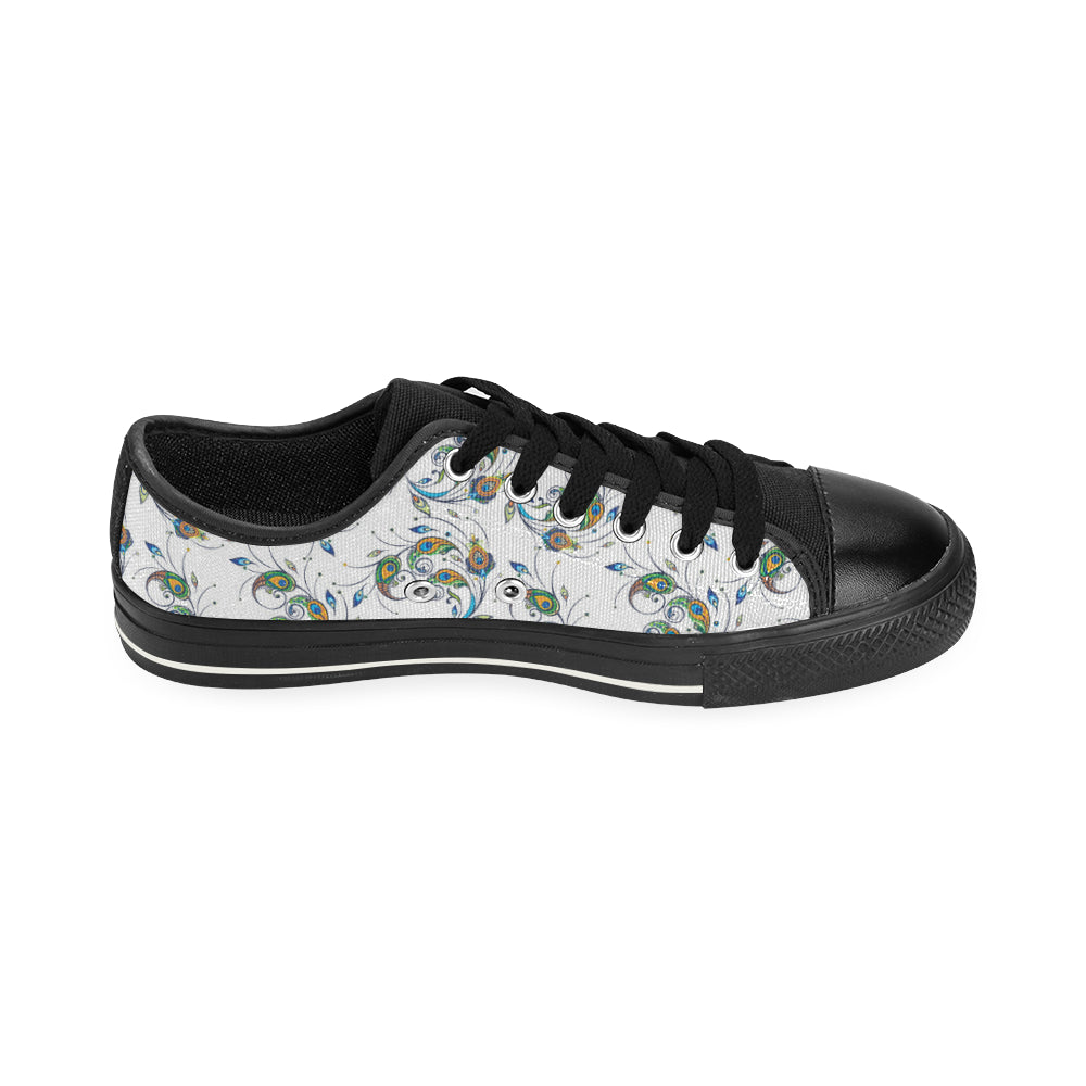 Peacock feather pattern Men's Low Top Canvas Shoes Black