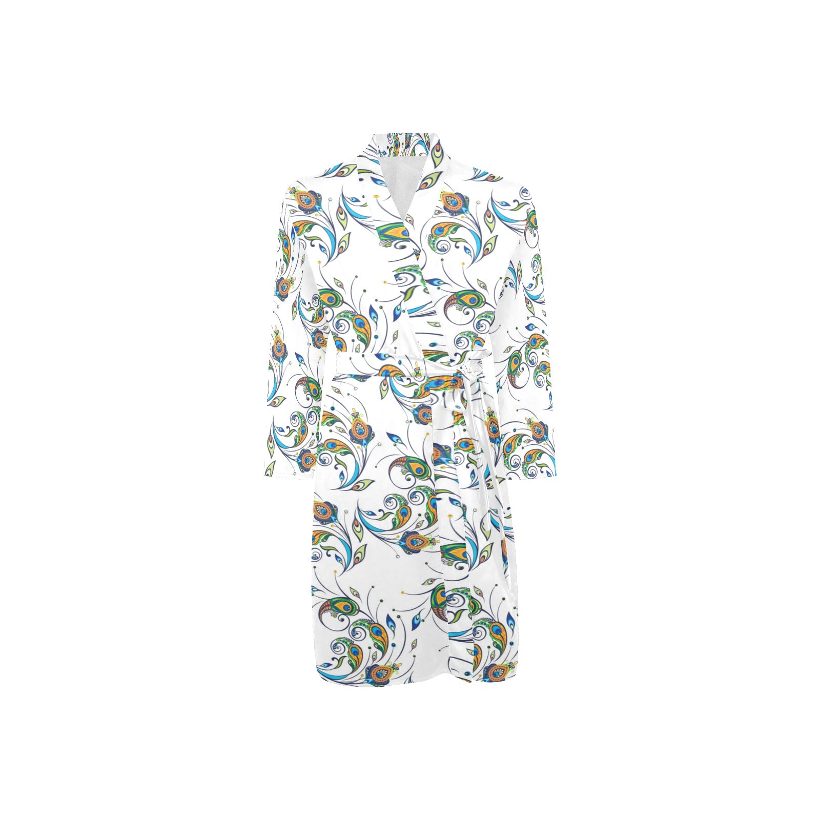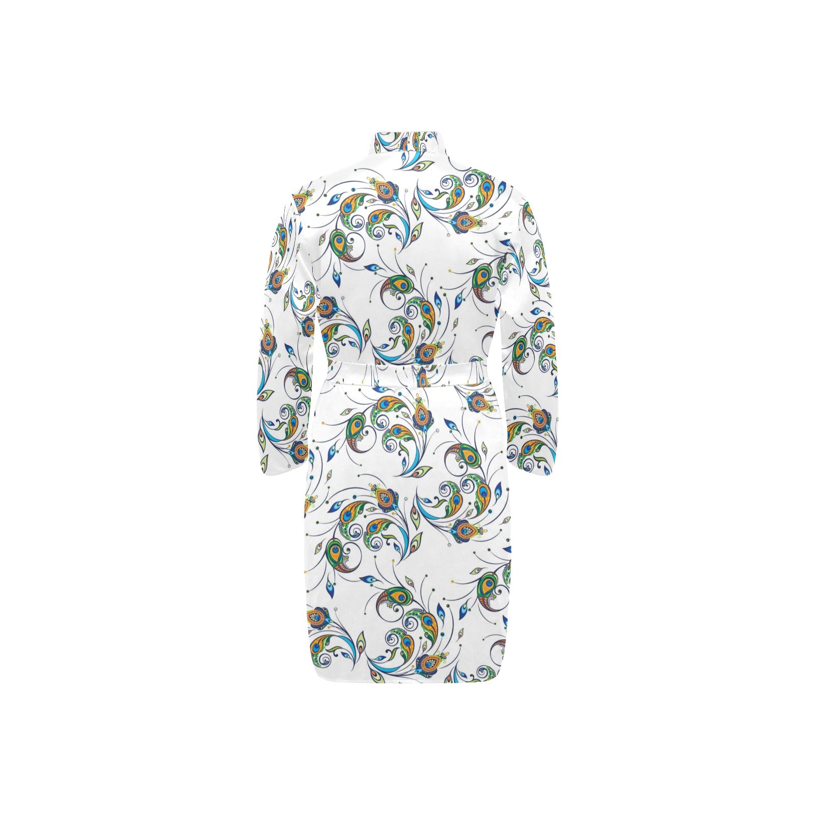 Peacock feather pattern Men's Long Sleeve Belted Night Robe
