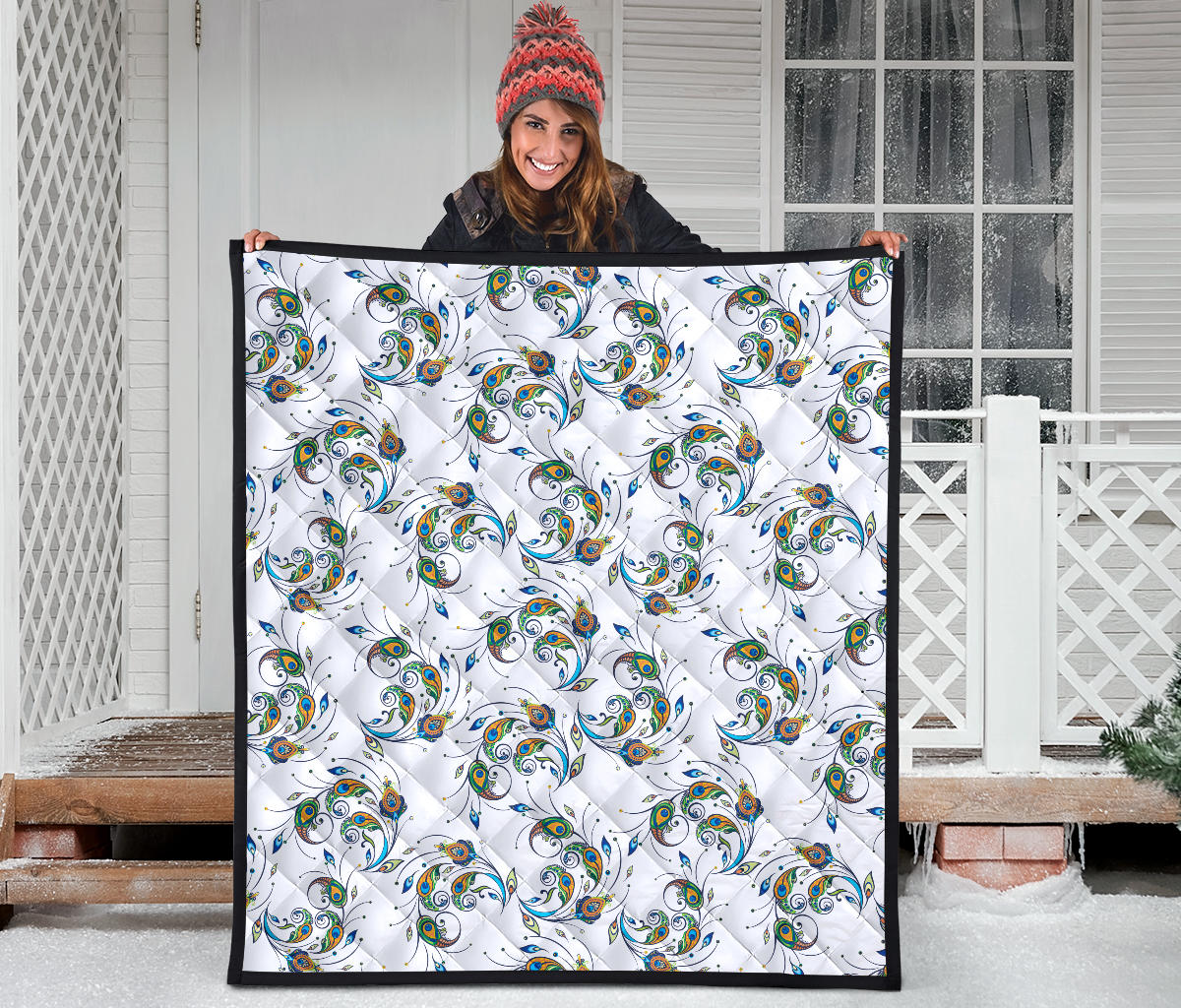 Peacock Feather Pattern Premium Quilt is a uniqued design and limited item. It made to order, hand printed, and sewn with love in our factory.
