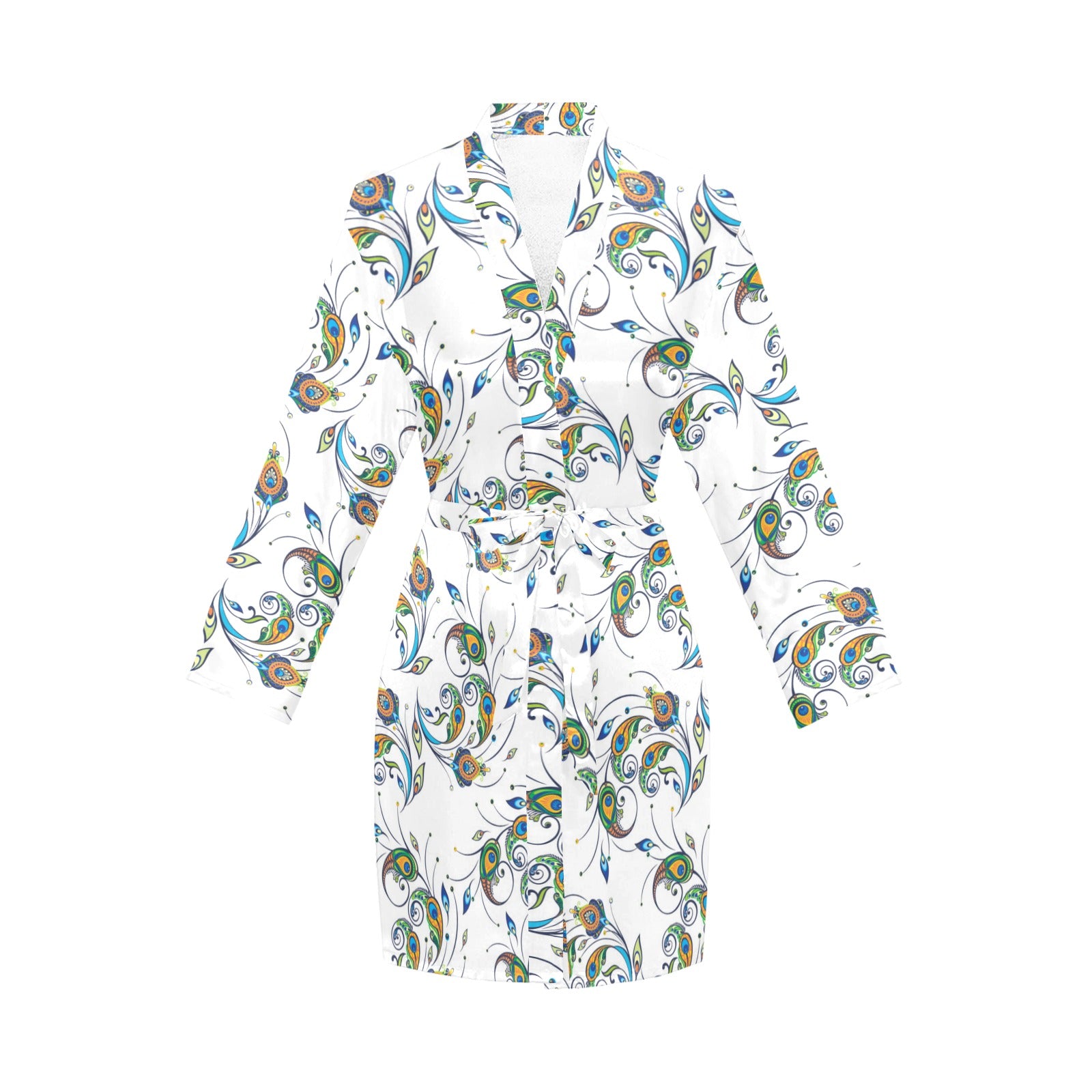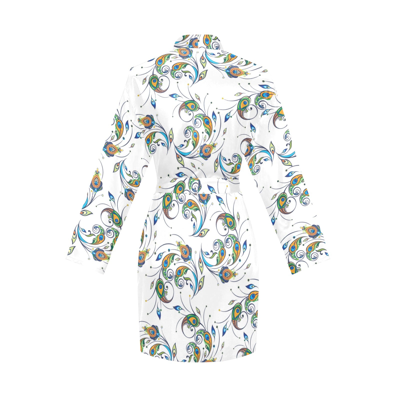 Peacock feather pattern Women's Long Sleeve Belted Night Robe