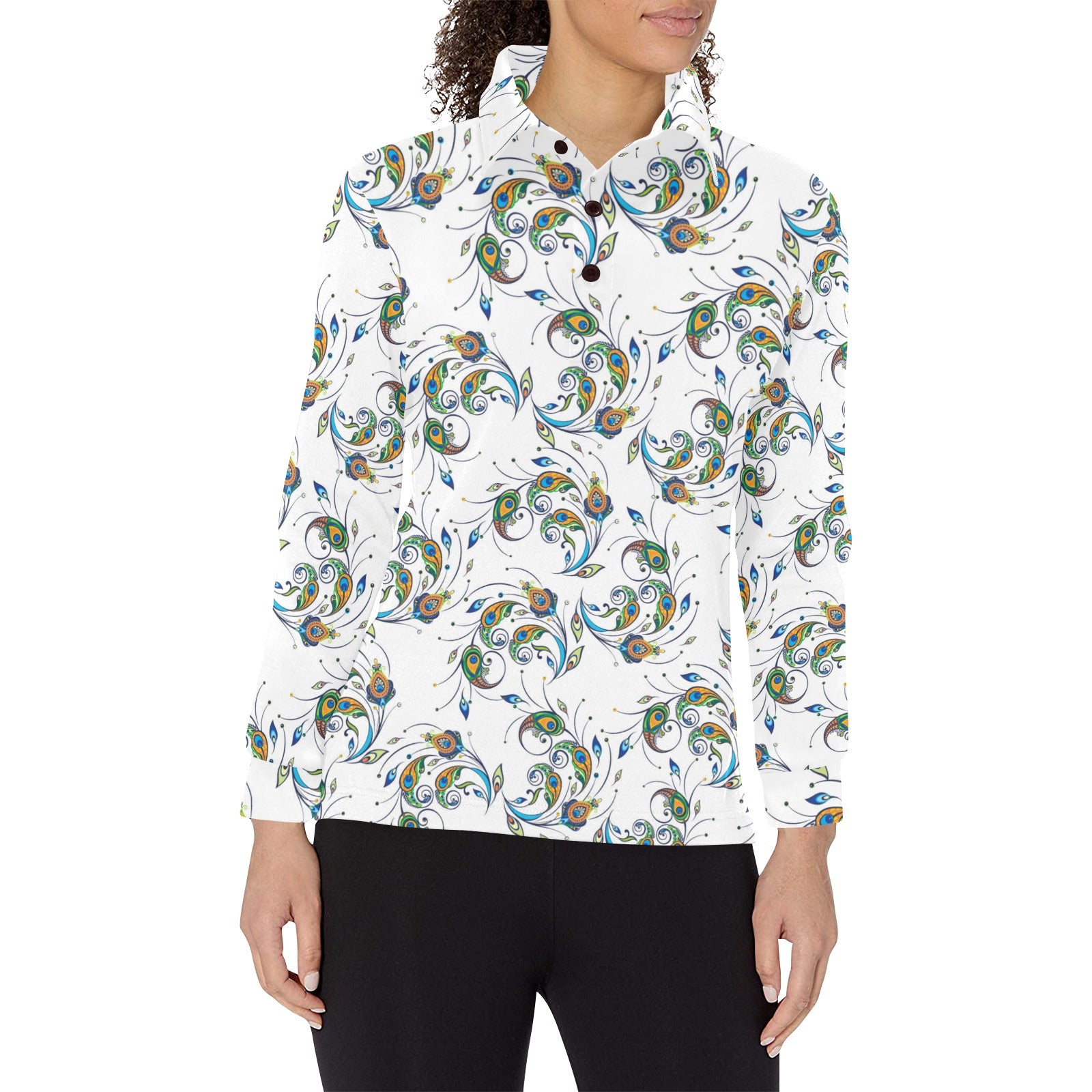 Peacock feather pattern Women's Long Sleeve Polo Shirt