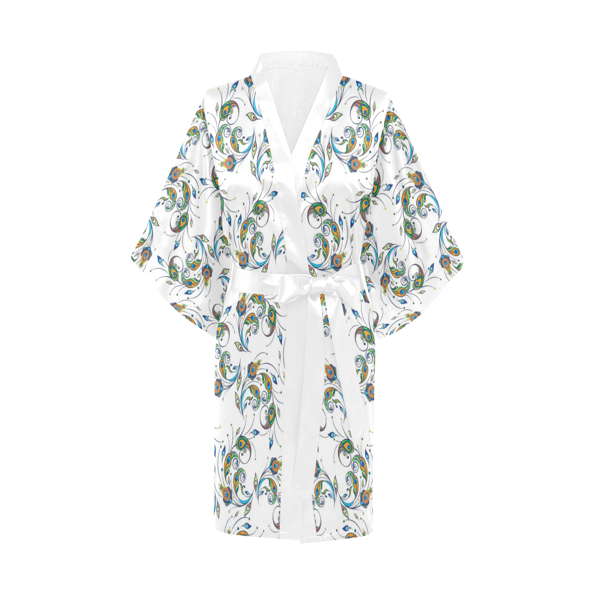 Peacock feather pattern Women's Short Kimono Robe is a uniqued design and limited item. It made to order, hand printed, and sewn with love in our factory.