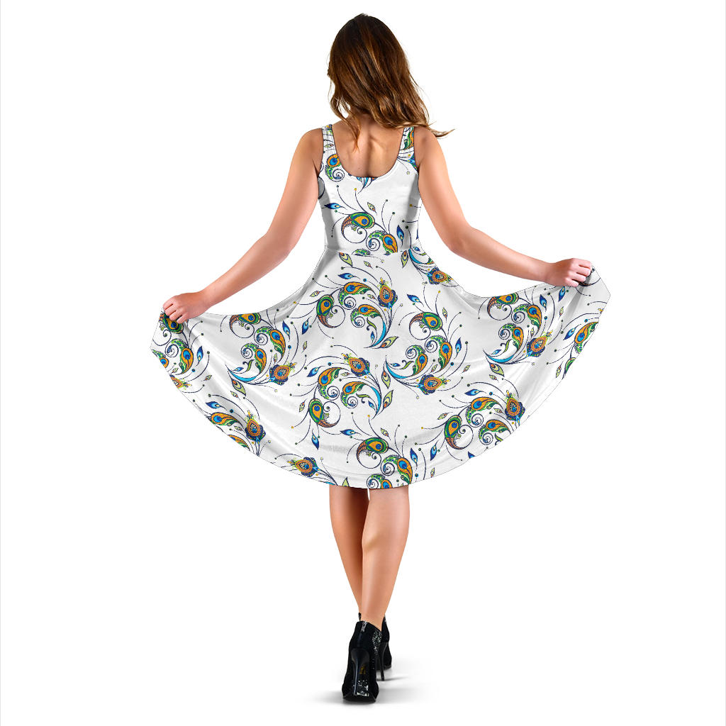 Peacock feather pattern Sleeveless Midi Dress is a uniqued design and limited item. It made to order, hand printed, and sewn with love in our factory.