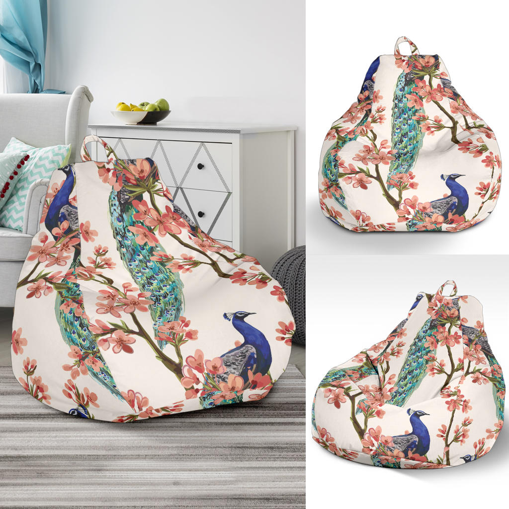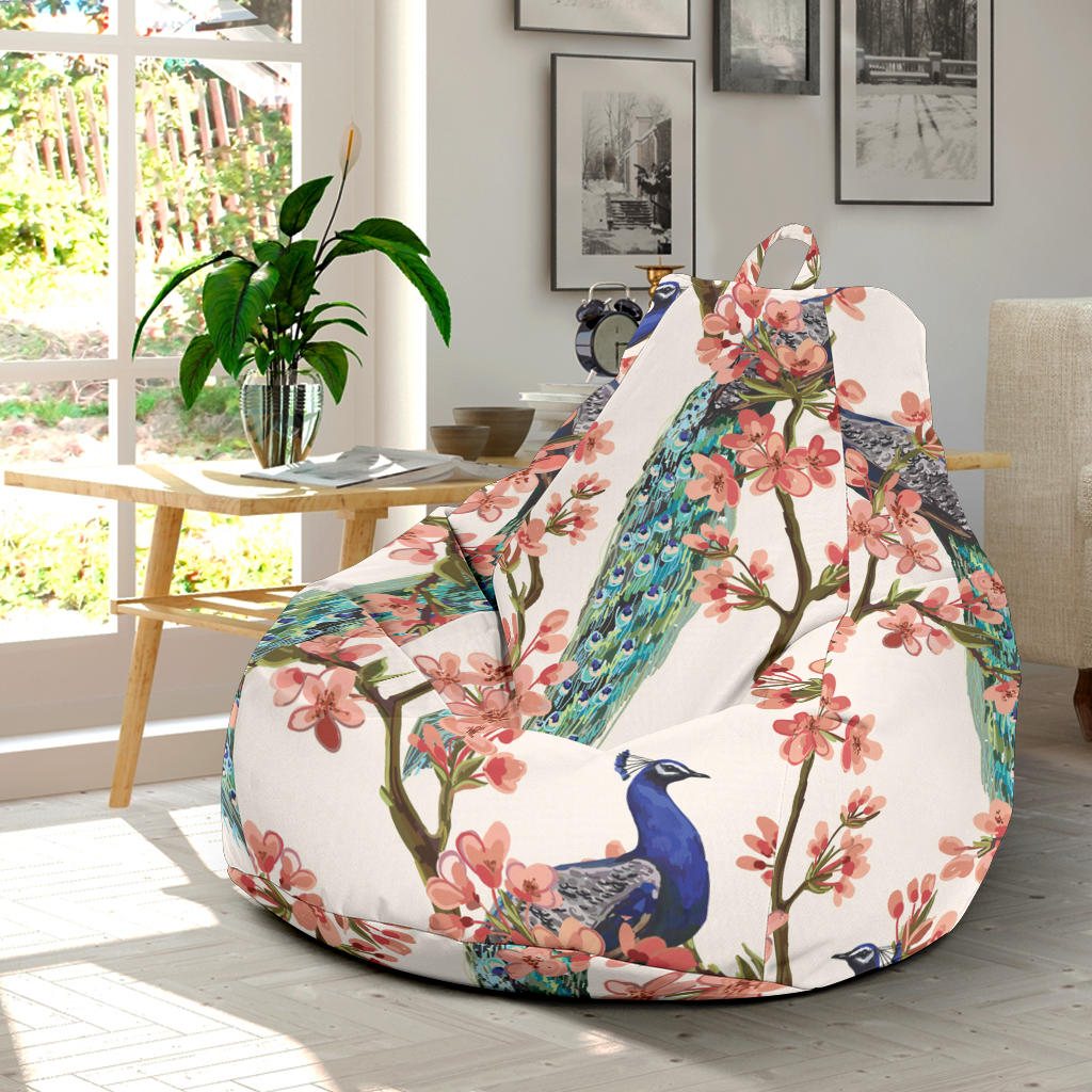 Peacock Tropical Flower Pattern Bean Bag Cover