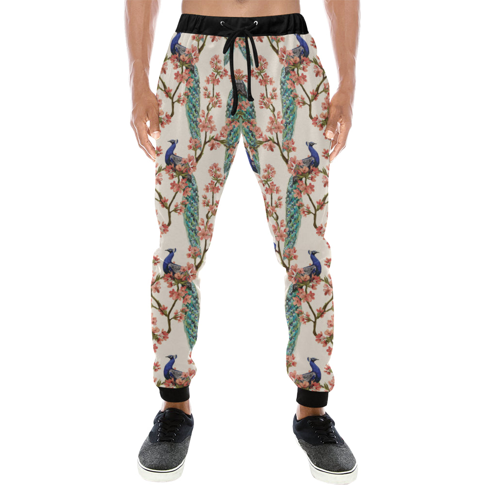 Peacock tropical flower pattern Unisex Casual Sweatpants