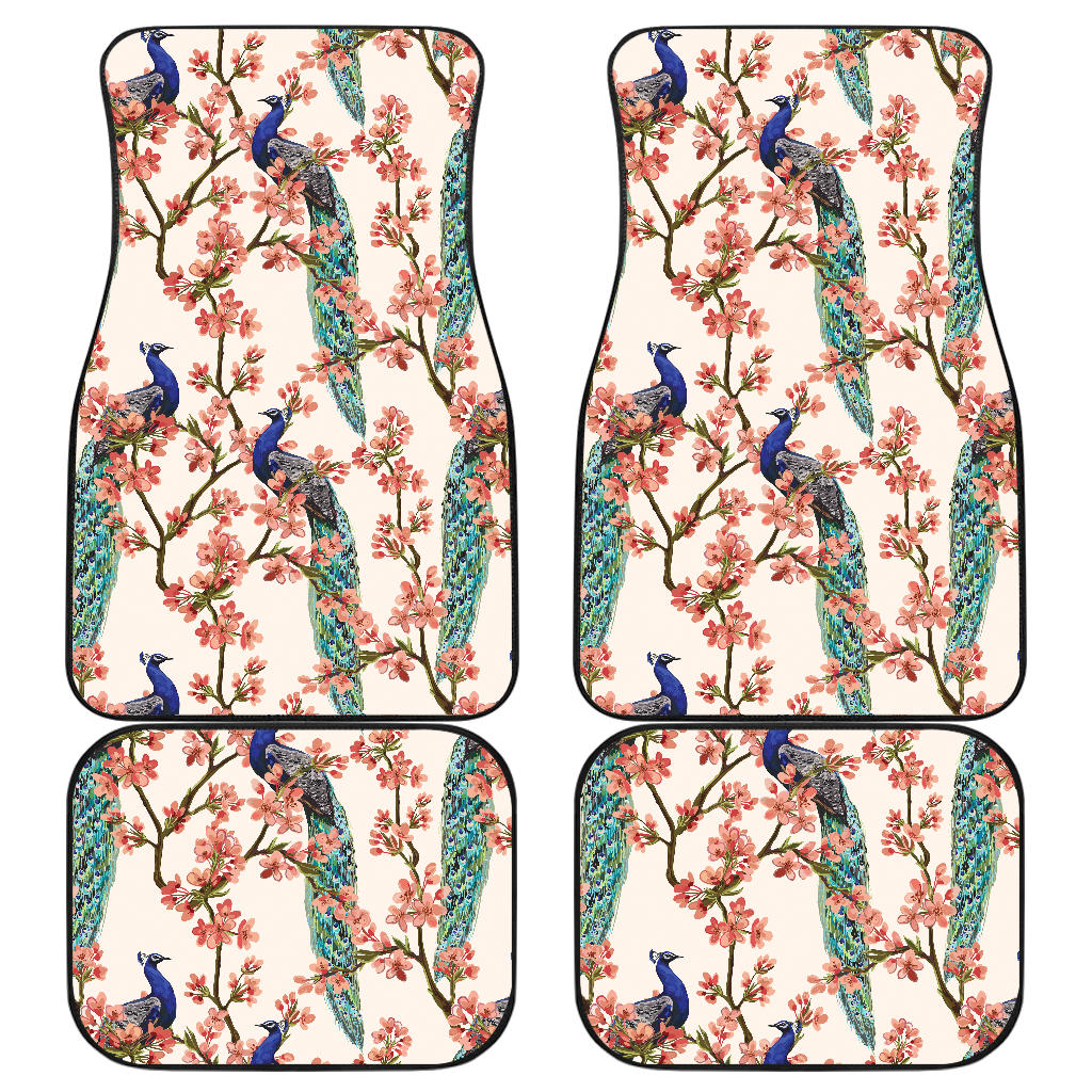 Peacock Tropical Flower Pattern Front And Back Car Mats