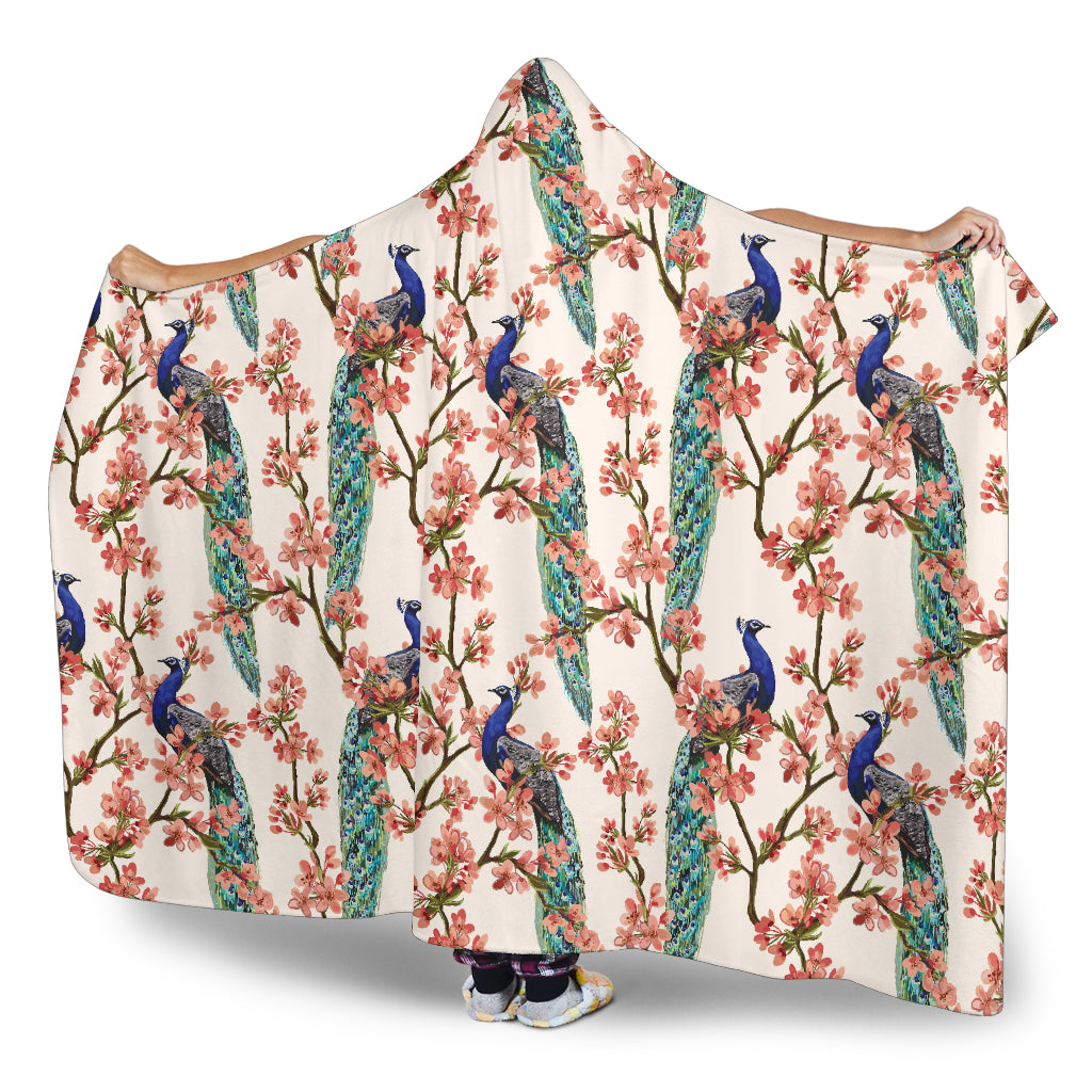 Peacock Tropical Flower Pattern Hooded Blanket