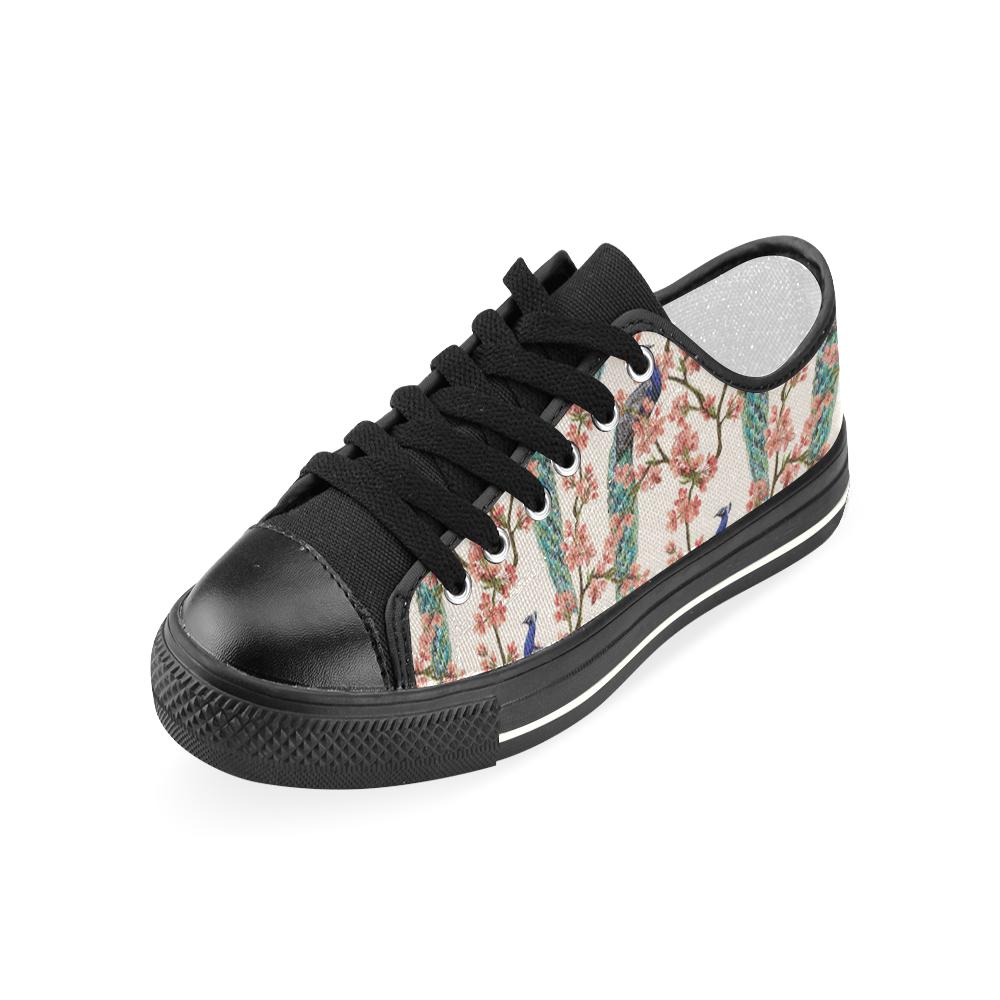 Peacock tropical flower pattern Kids' Boys' Girls' Low Top Canvas Shoes Black