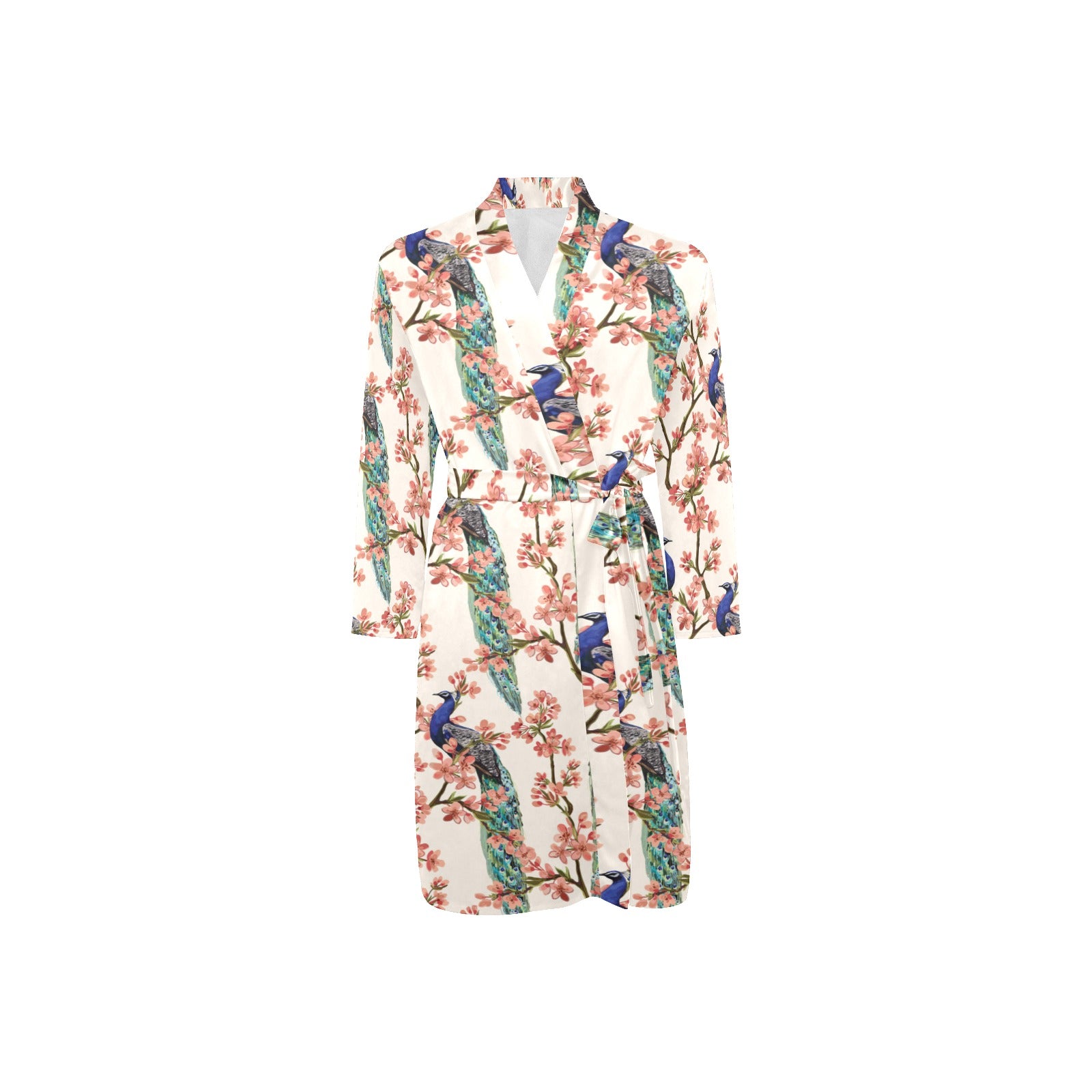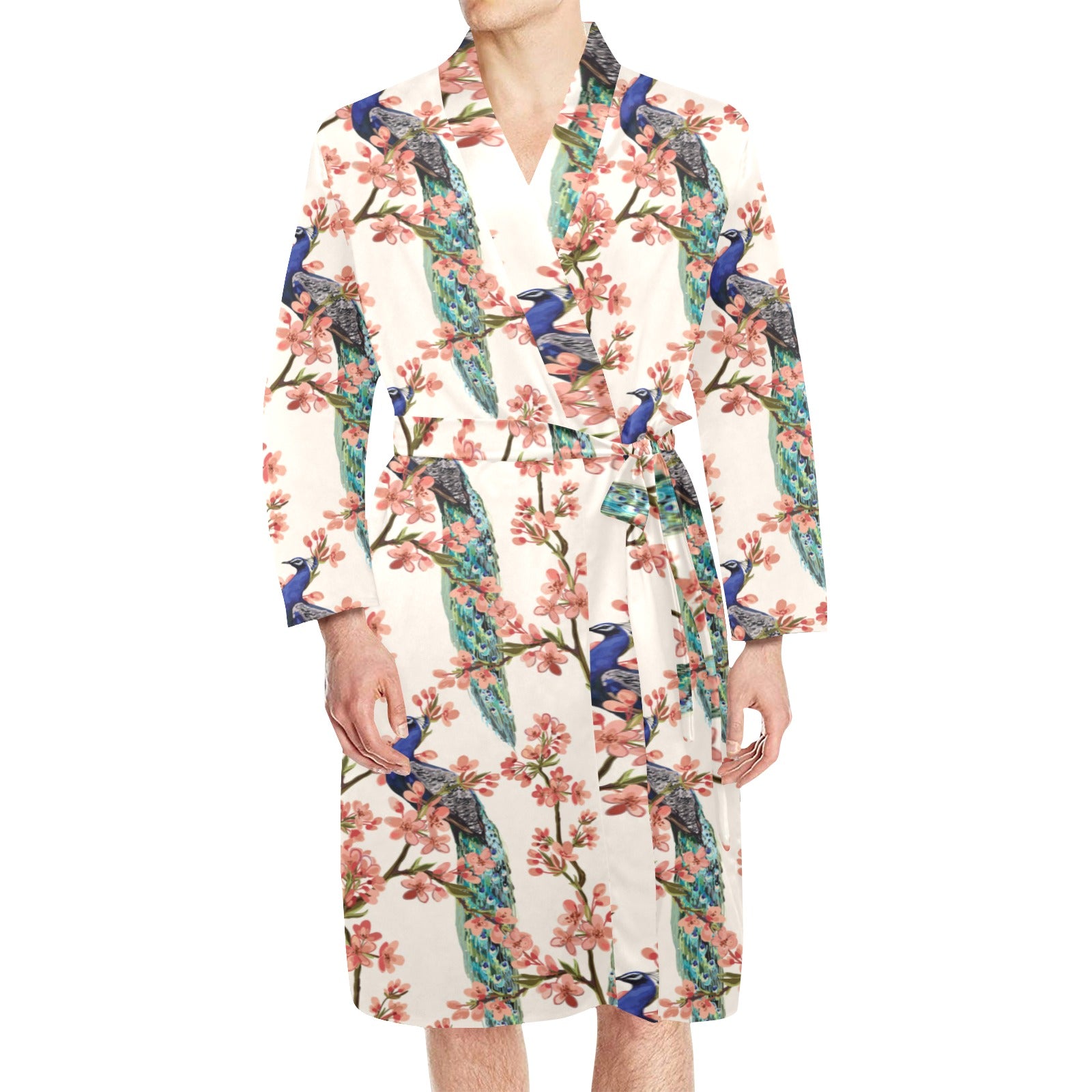 Peacock tropical flower pattern Men's Long Sleeve Belted Night Robe
