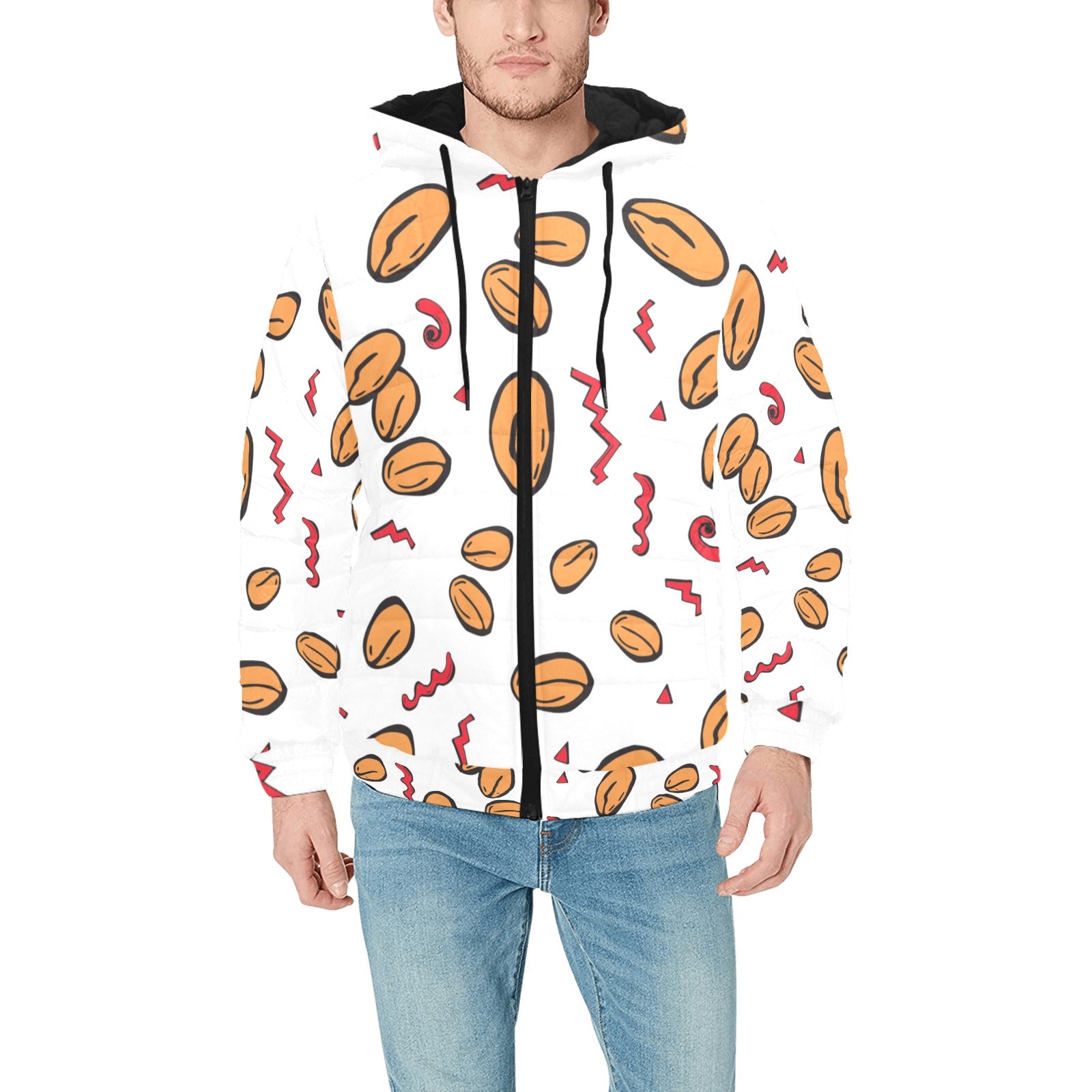 Men's Padded Hooded Jacket is a uniqued design and limited item. It made to order, hand printed, and sewn with love in our factory.