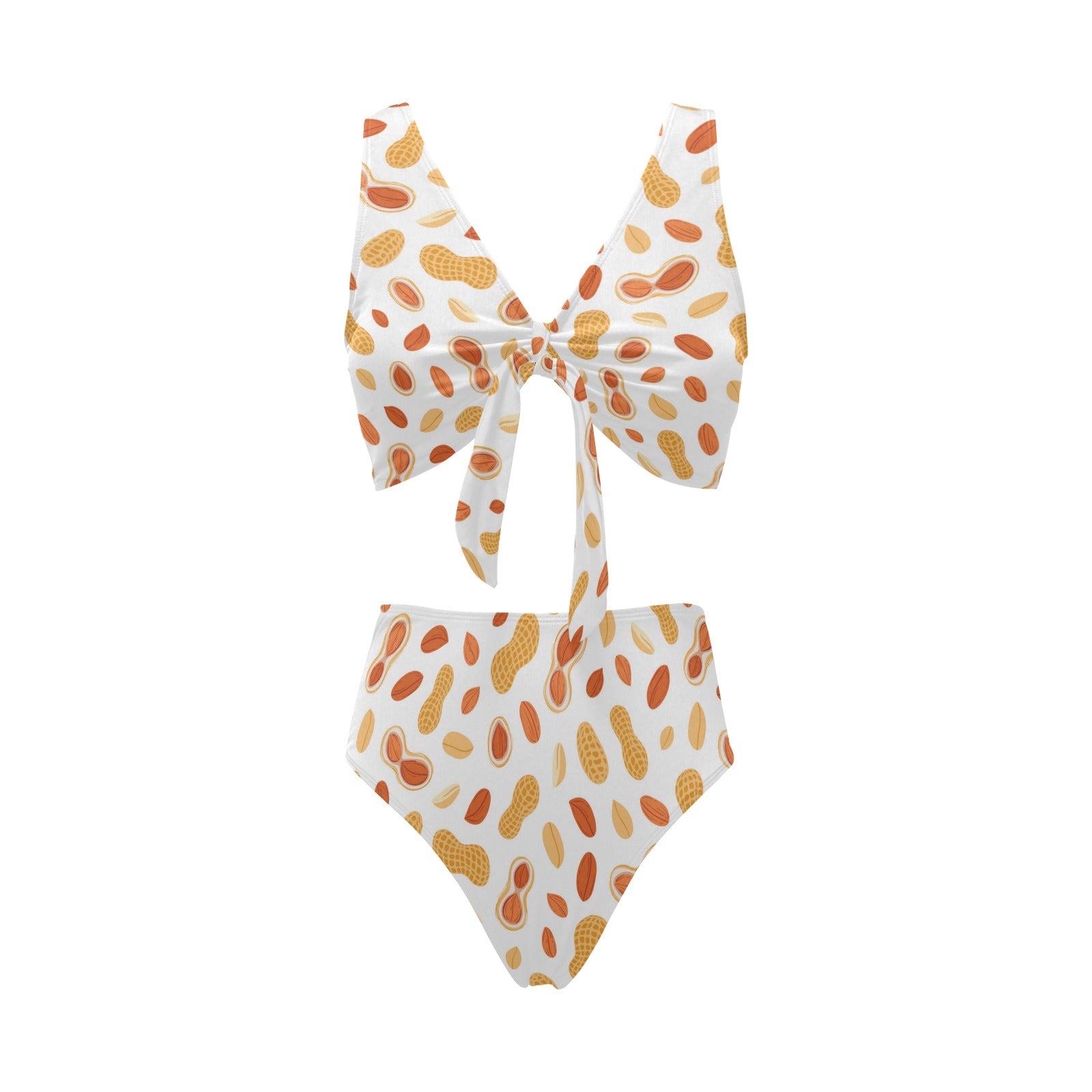peanuts pattern Chest Bowknot High Waisted Bikini Swimsuit