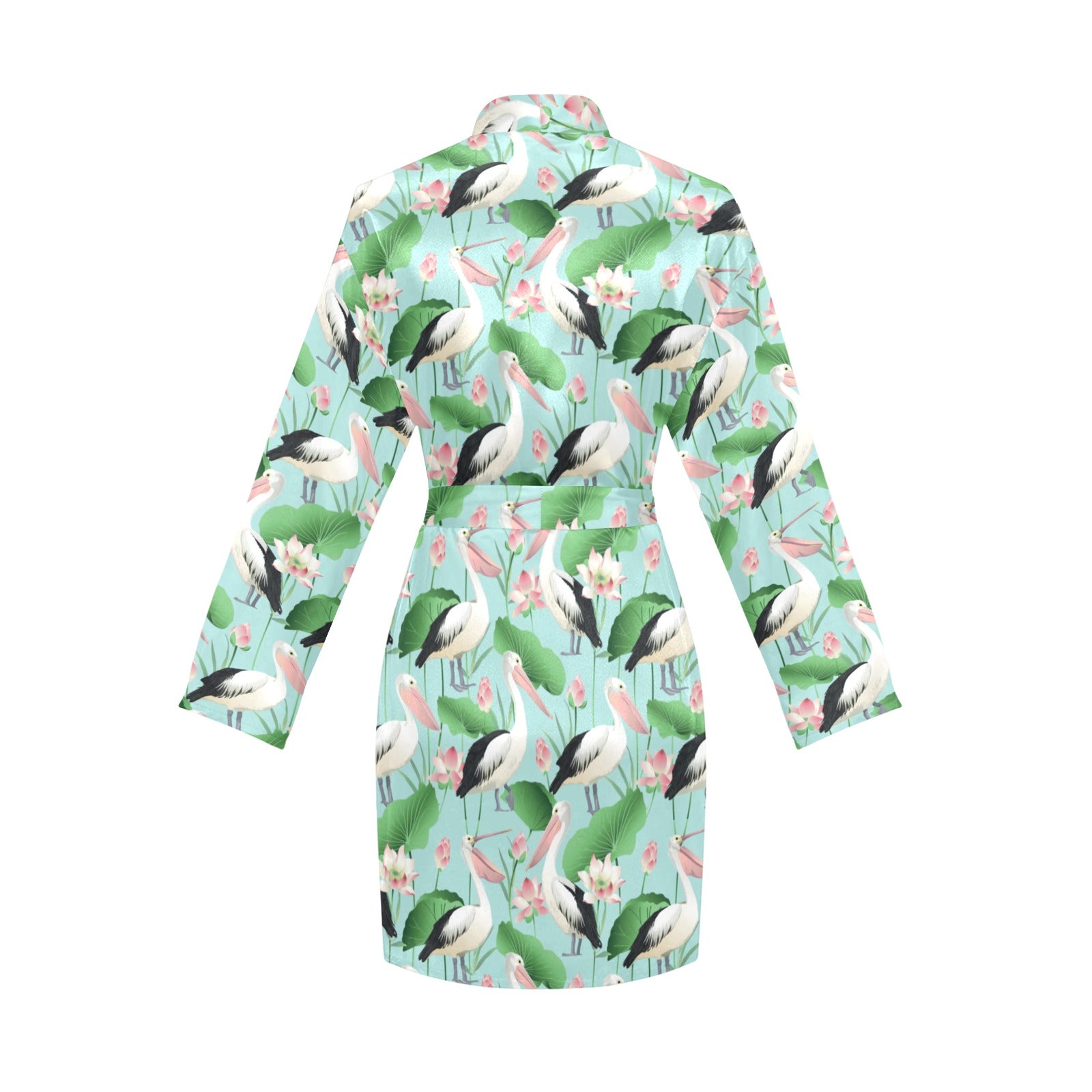 Pelican Pattern Print Design 01 Women's Long Sleeve Belted Night Robe