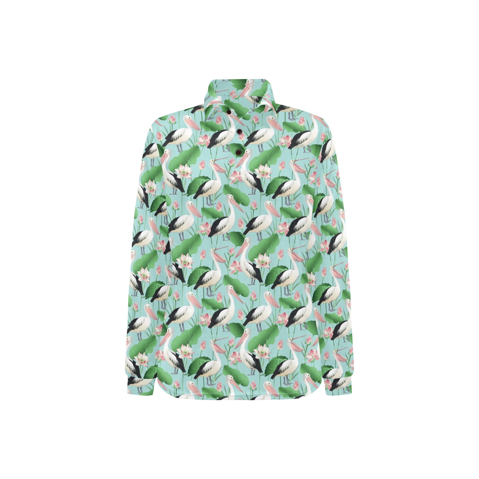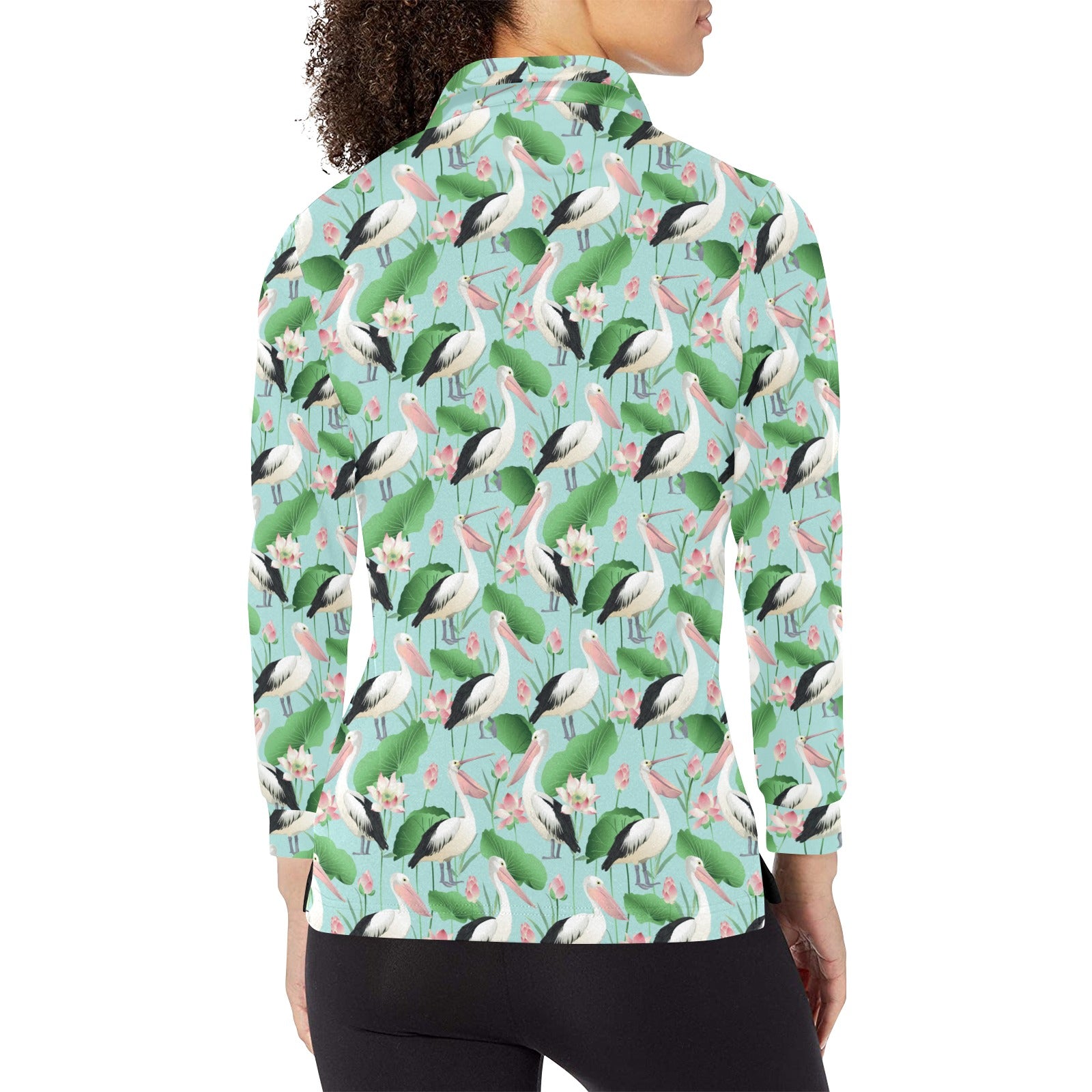 Pelican Pattern Print Design 01 Women's Long Sleeve Polo Shirt