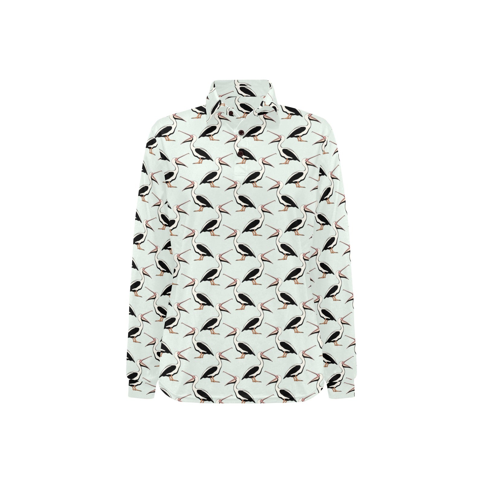 Pelican Pattern Print Design 02 Women's Long Sleeve Polo Shirt