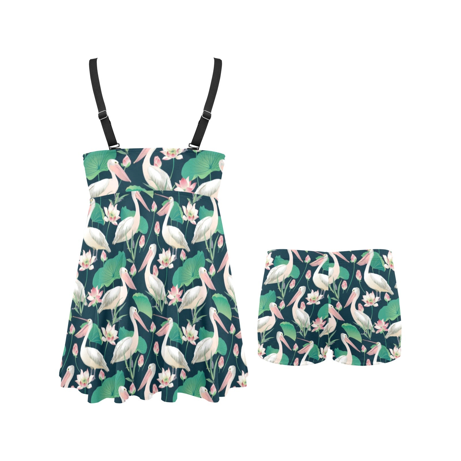 Pelican Pattern Print Design 03 Chest Sexy Pleated Two Piece Swim Dress