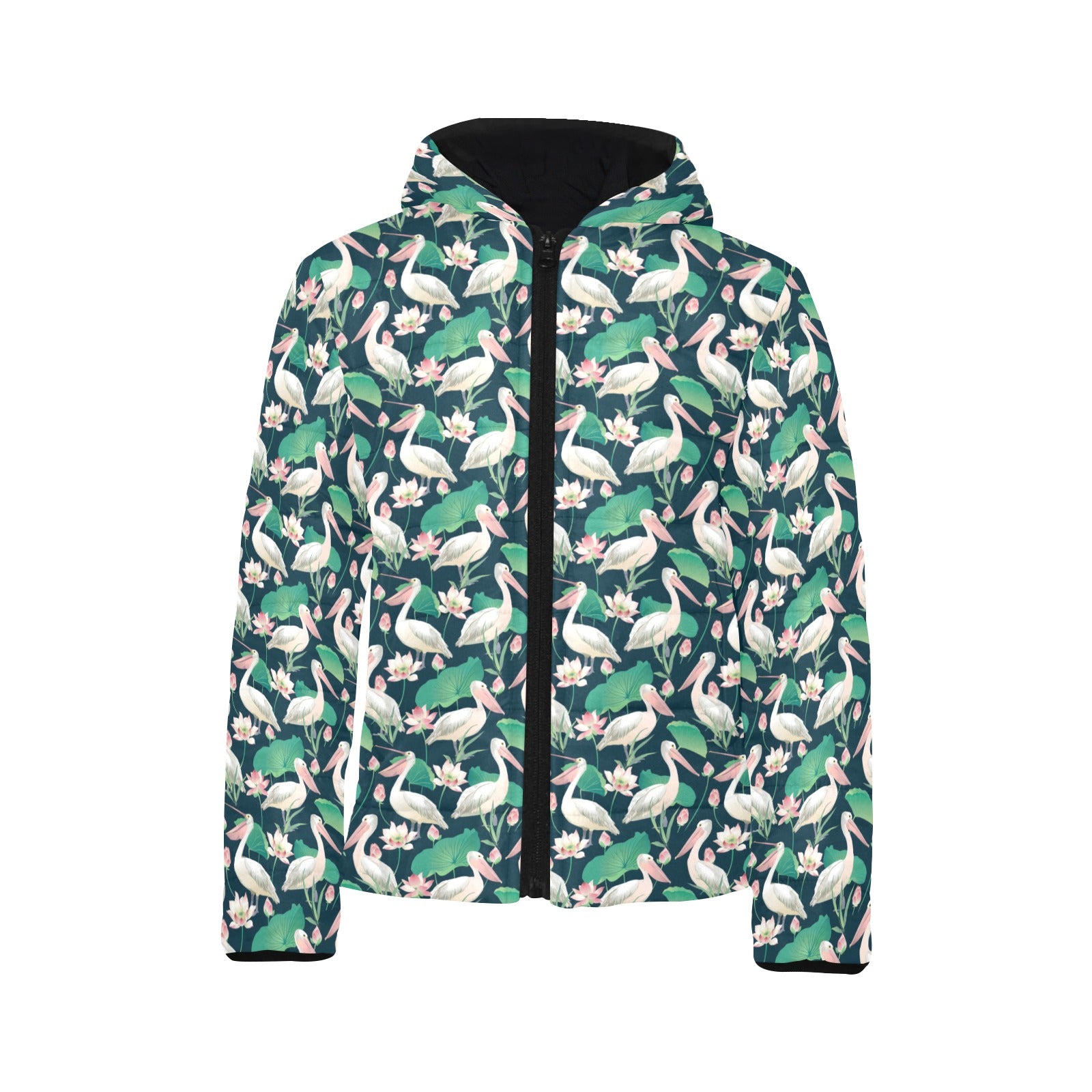 Pelican Pattern Print Design 03 Kids' Boys' Girls' Padded Hooded Jacket