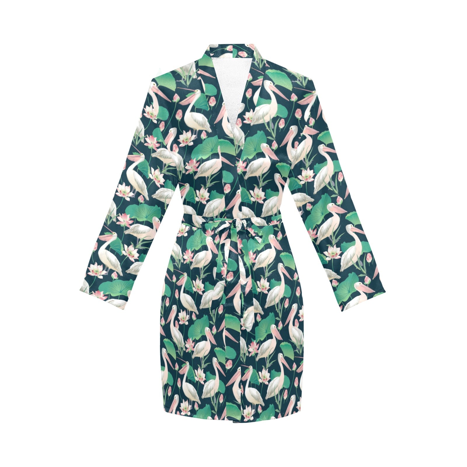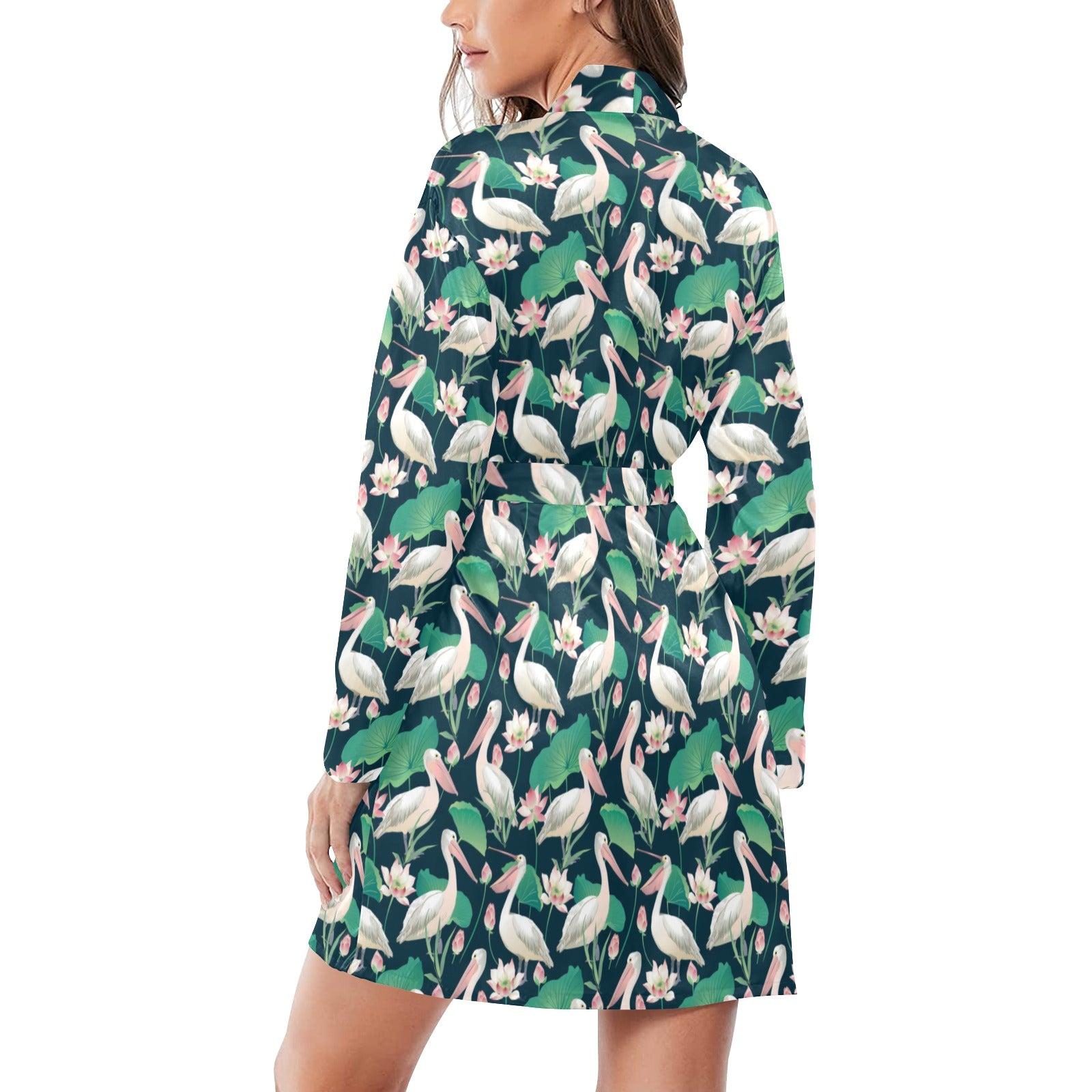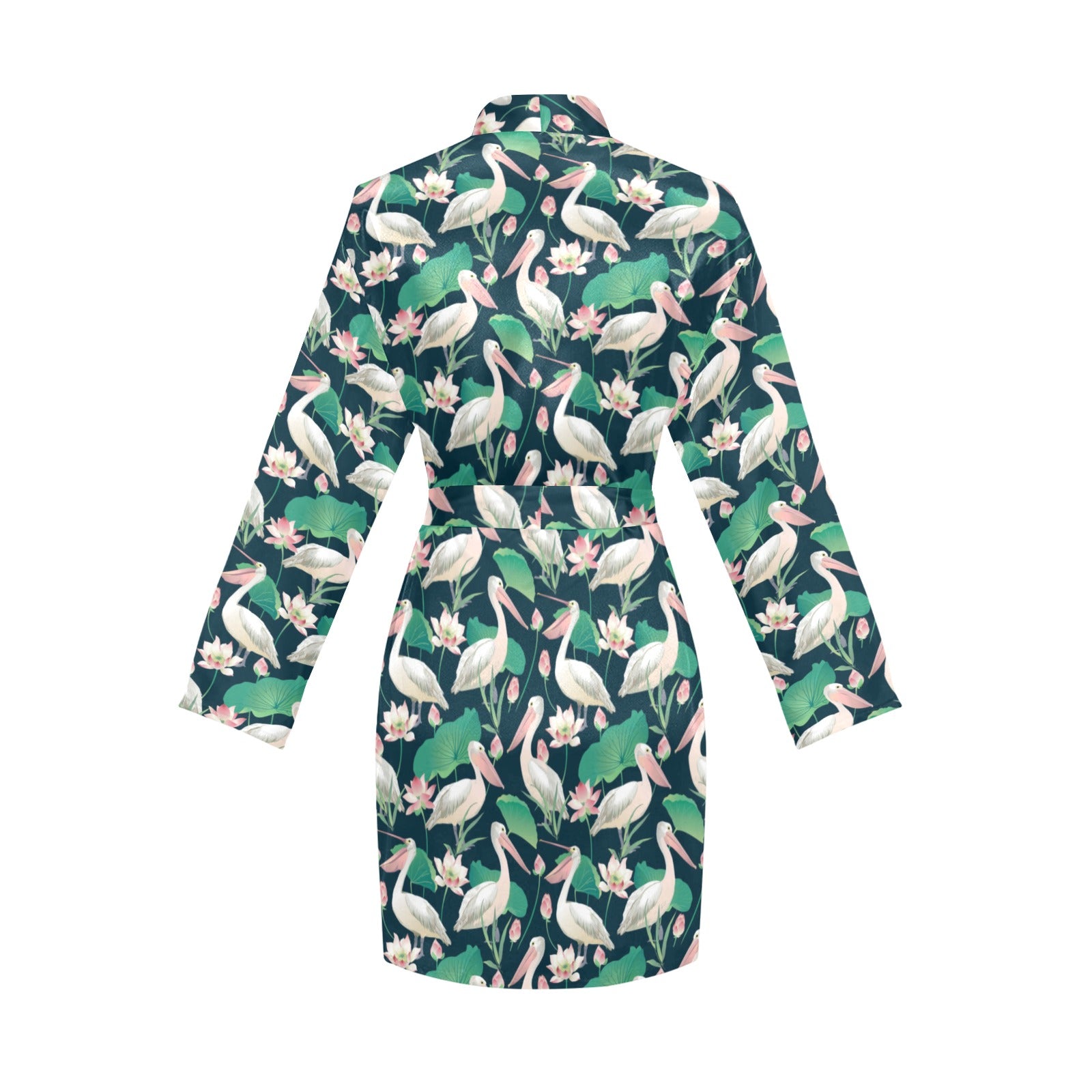 Pelican Pattern Print Design 03 Women's Long Sleeve Belted Night Robe