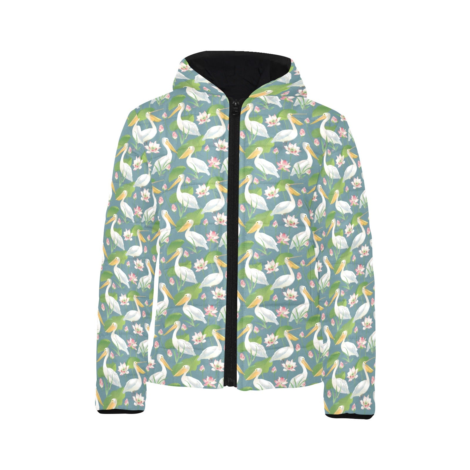 Pelican Pattern Print Design 04 Kids' Boys' Girls' Padded Hooded Jacket