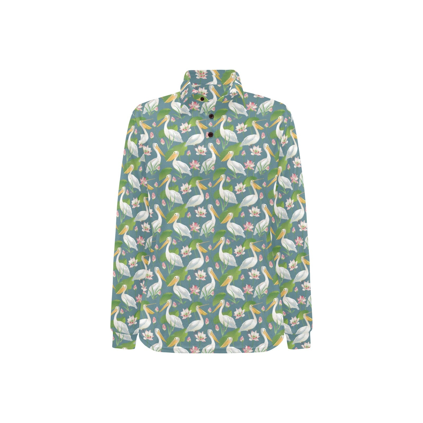 Pelican Pattern Print Design 04 Women's Long Sleeve Polo Shirt