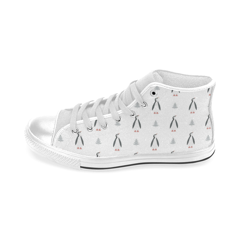 Penguin pattern Men's High Top Canvas Canvas Shoes White