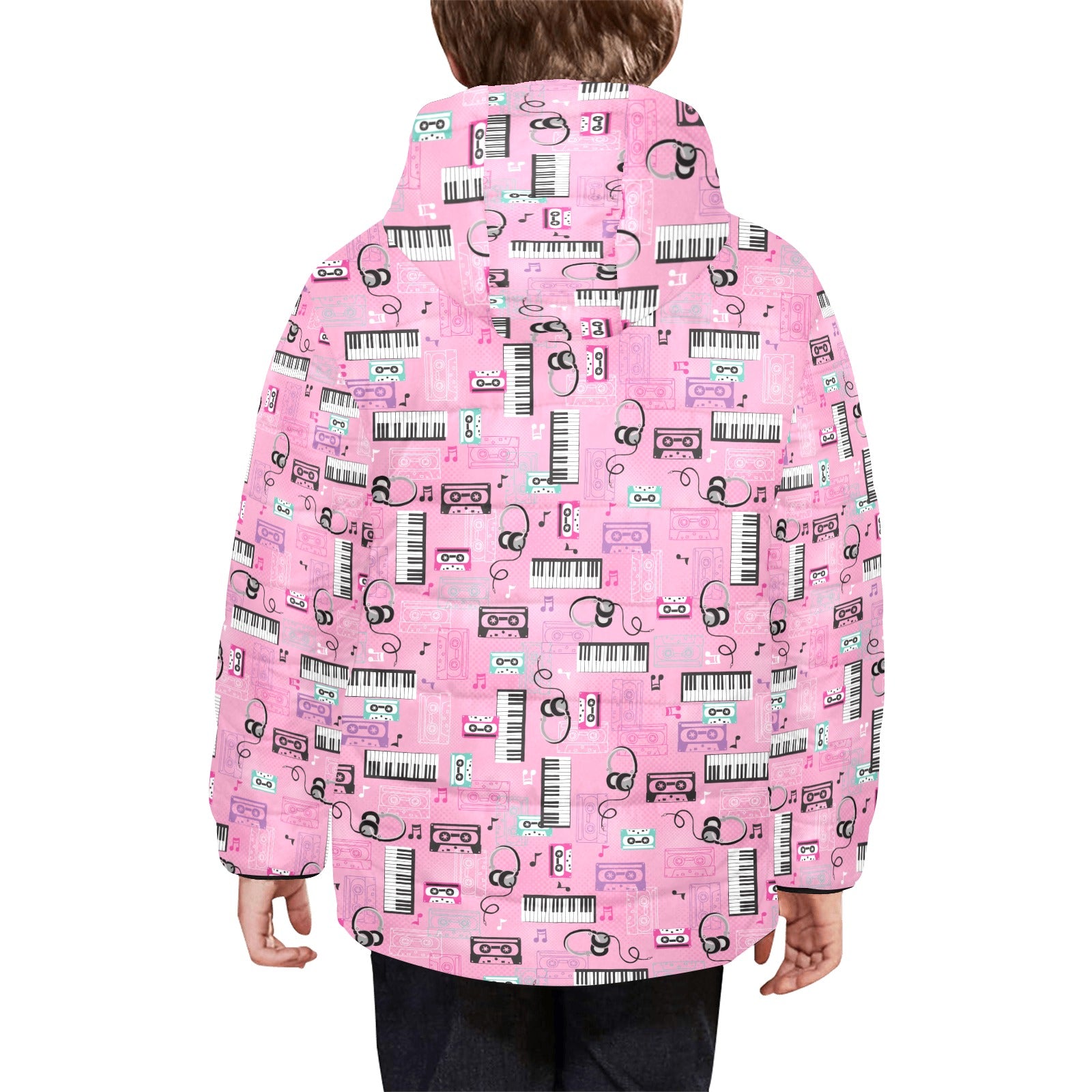 Piano Pattern Print Design 01 Kids' Boys' Girls' Padded Hooded Jacket