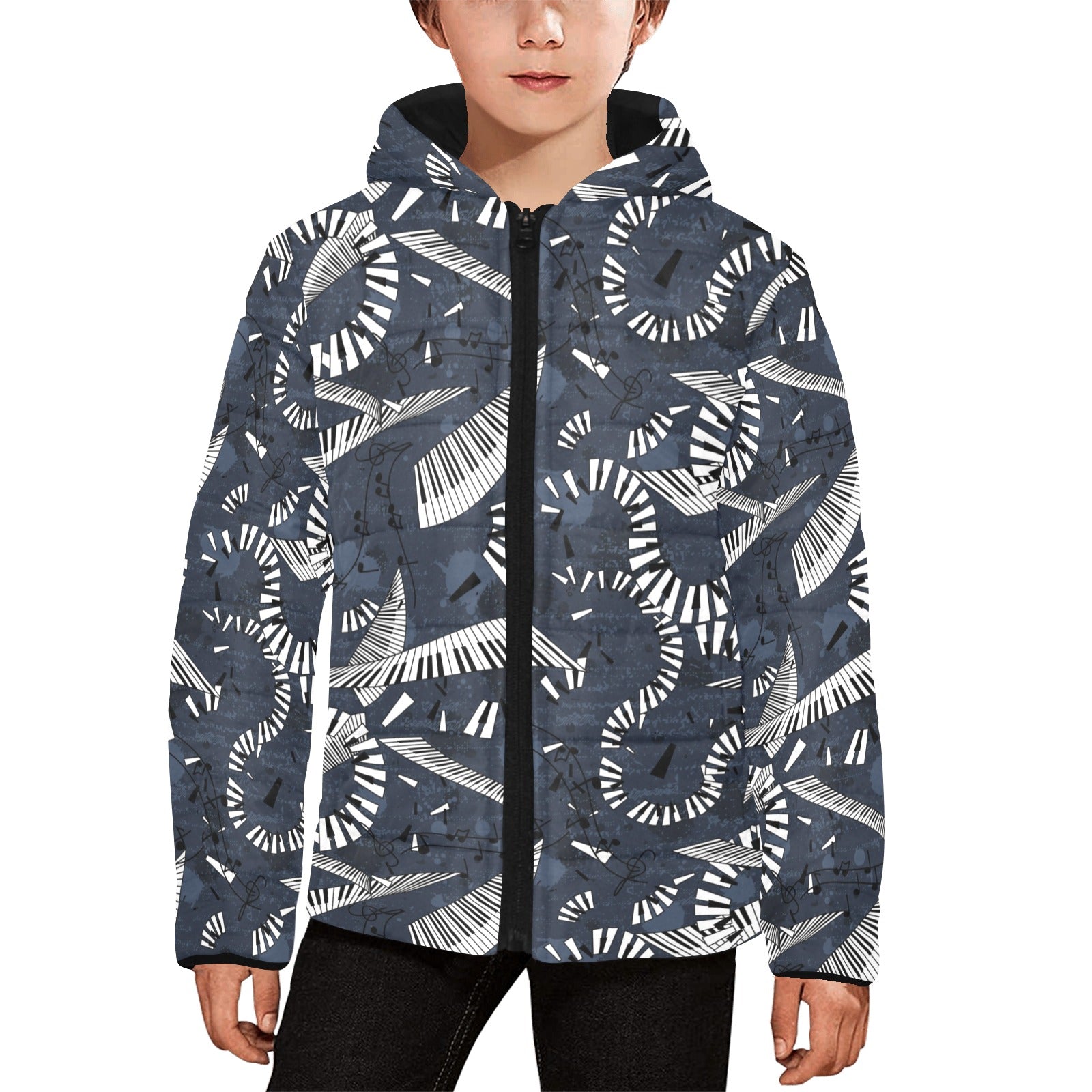 Piano Pattern Print Design 02 Kids' Boys' Girls' Padded Hooded Jacket