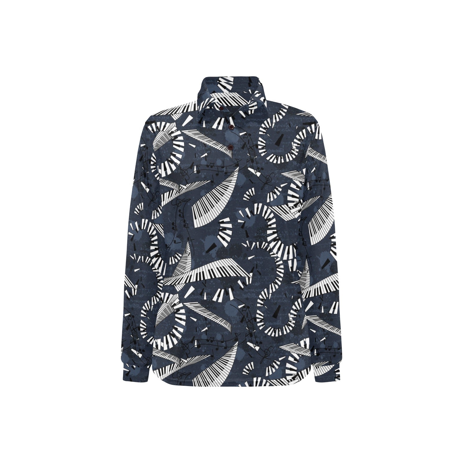 Piano Pattern Print Design 02 Women's Long Sleeve Polo Shirt