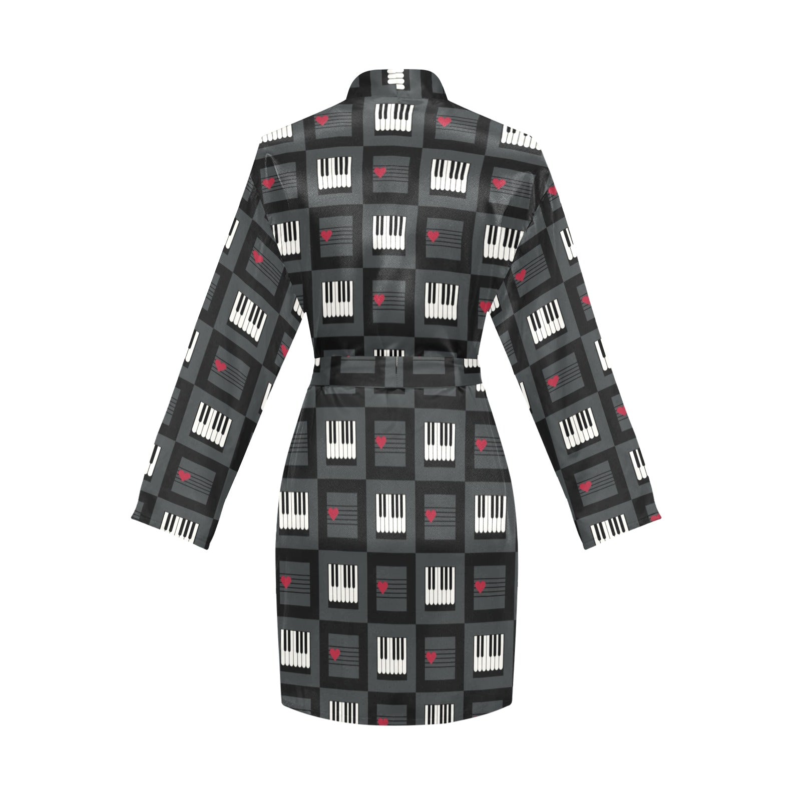Piano Pattern Print Design 05 Women's Long Sleeve Belted Night Robe