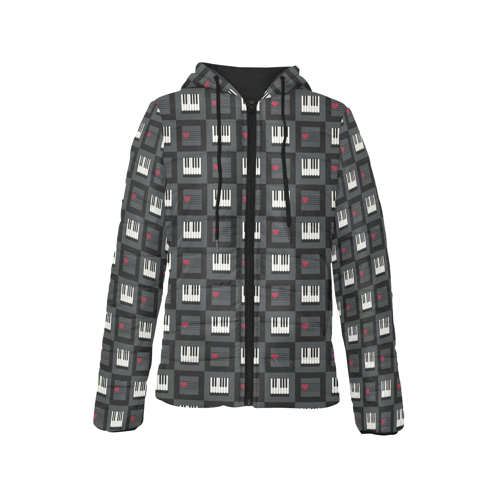 Piano Pattern Print Design 05 Women's Padded Hooded Jacket