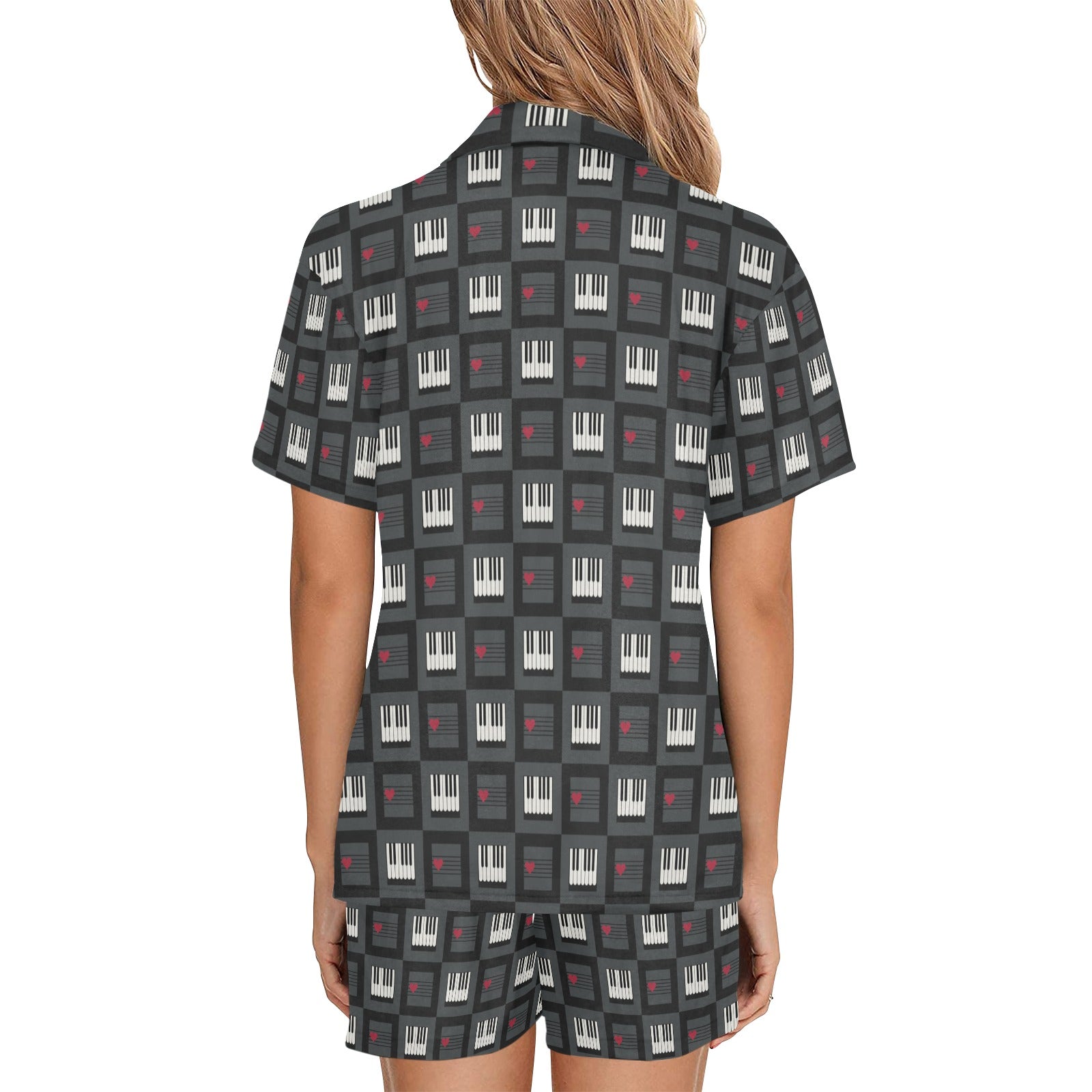 Piano Pattern Print Design 05 Women's V-Neck Short Pajama Set